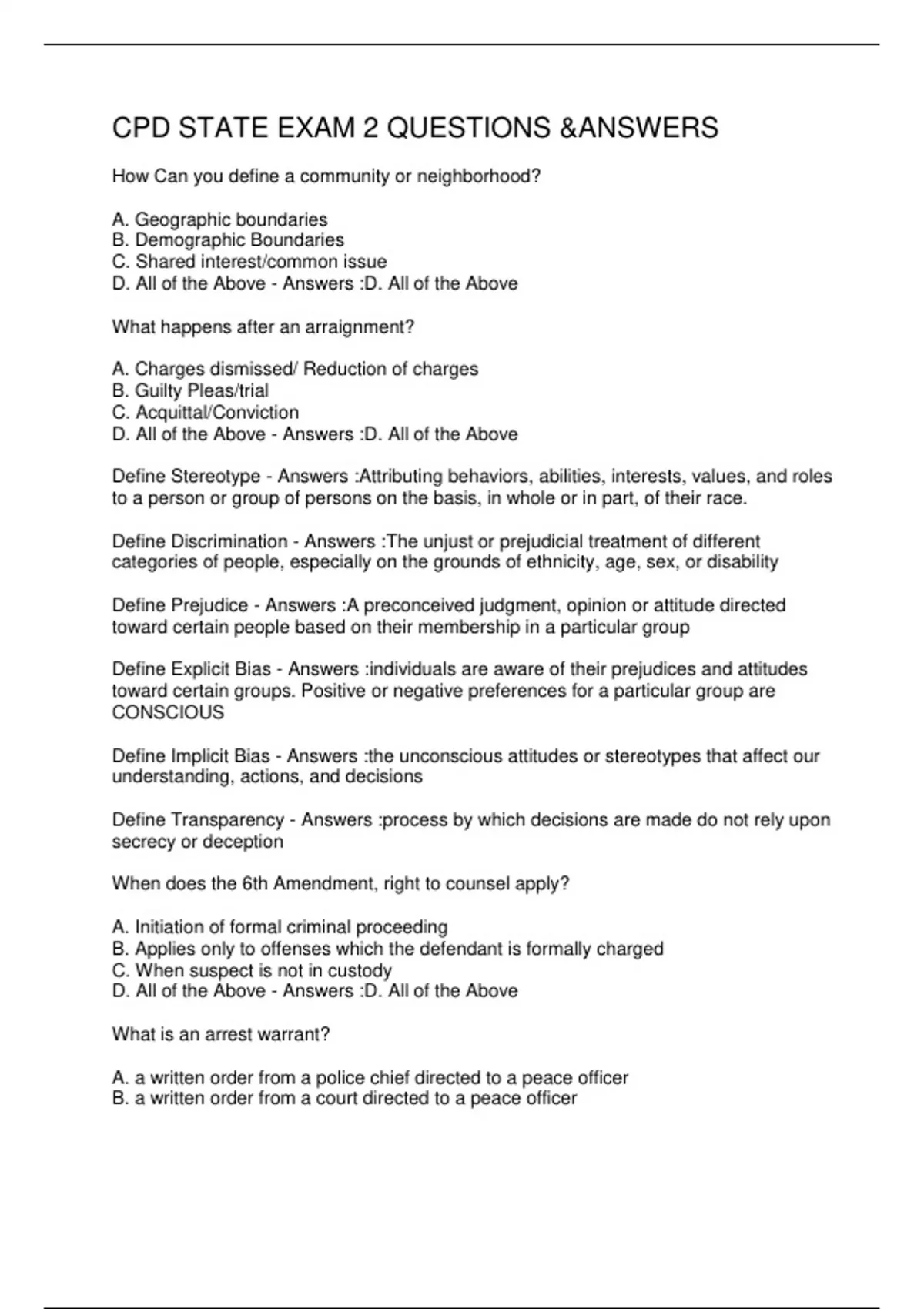 CPD STATE EXAM 2 QUESTIONS &ANSWERS