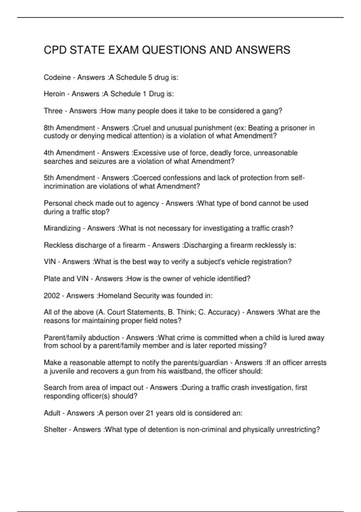 CPD STATE EXAM QUESTIONS AND ANSWERS