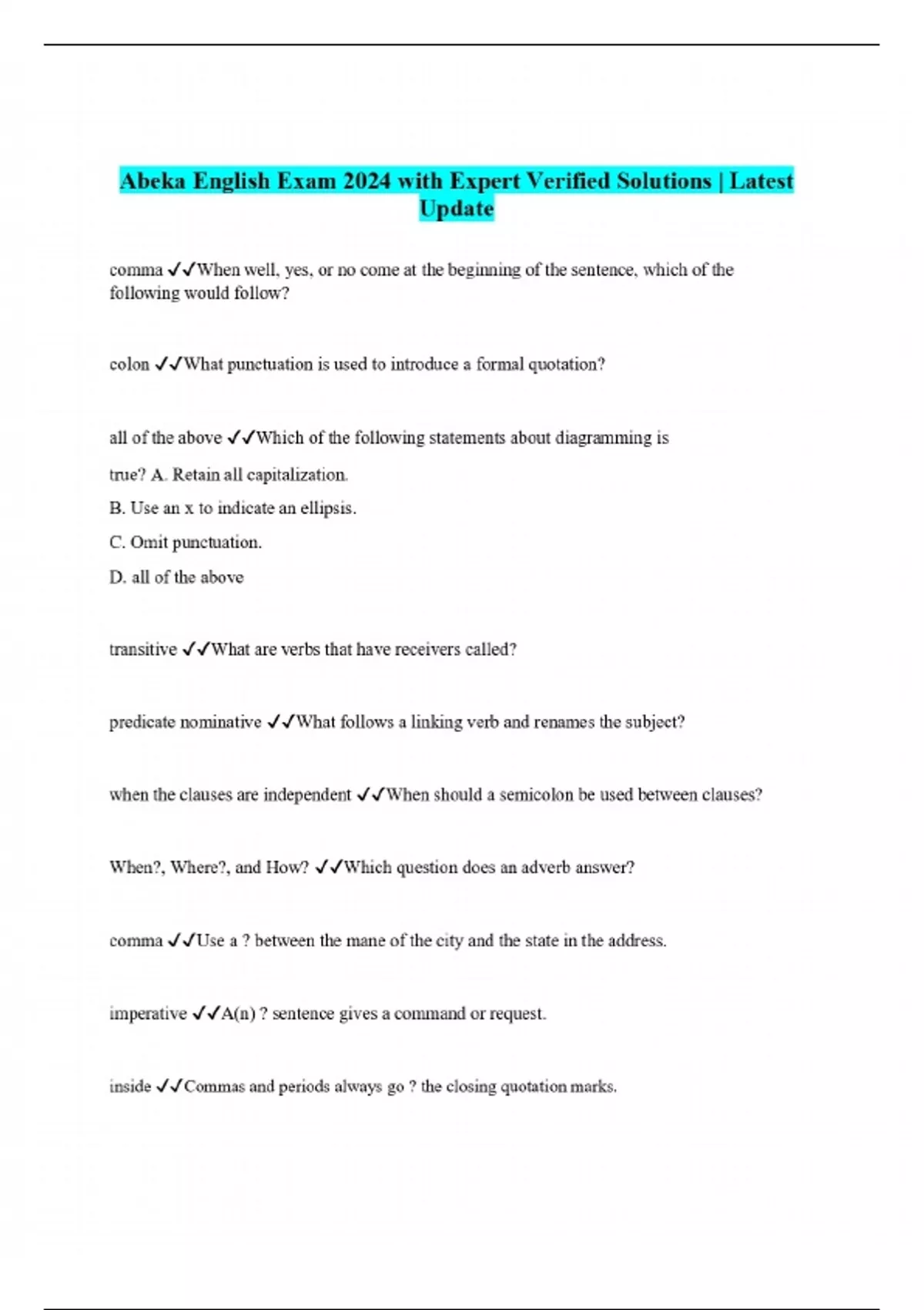 Abeka English Exam 2024 with Expert Verified Solutions | Latest Update