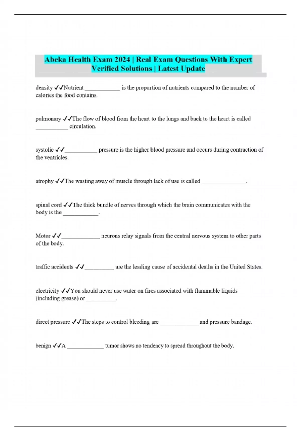 Abeka Health Exam 2024 | Real Exam Questions With Expert Verified Solutions | Latest Update