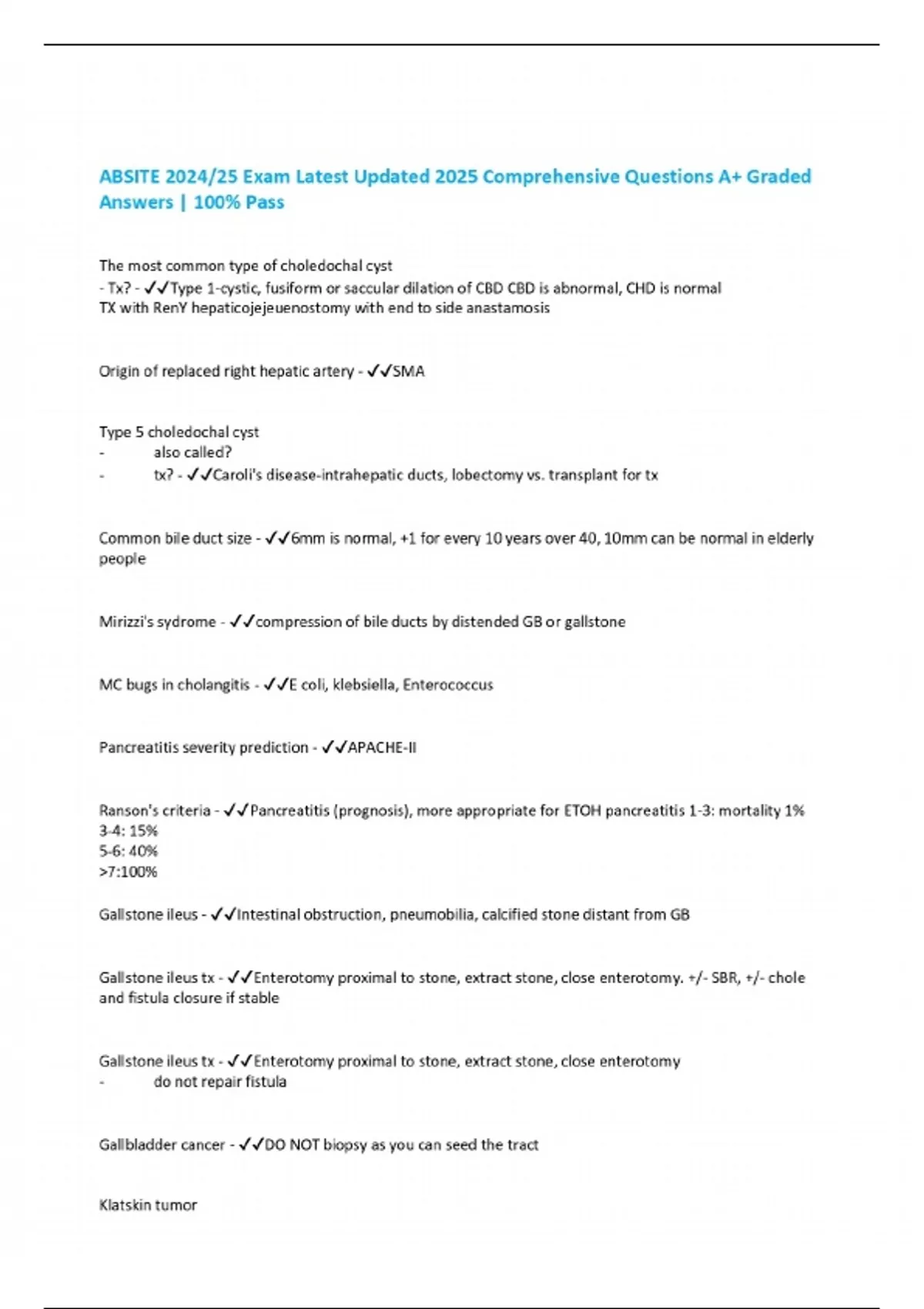 ABSITE 2024/25 Exam Latest Updated 2025 Comprehensive Questions A+ Graded Answers | 100% Pass