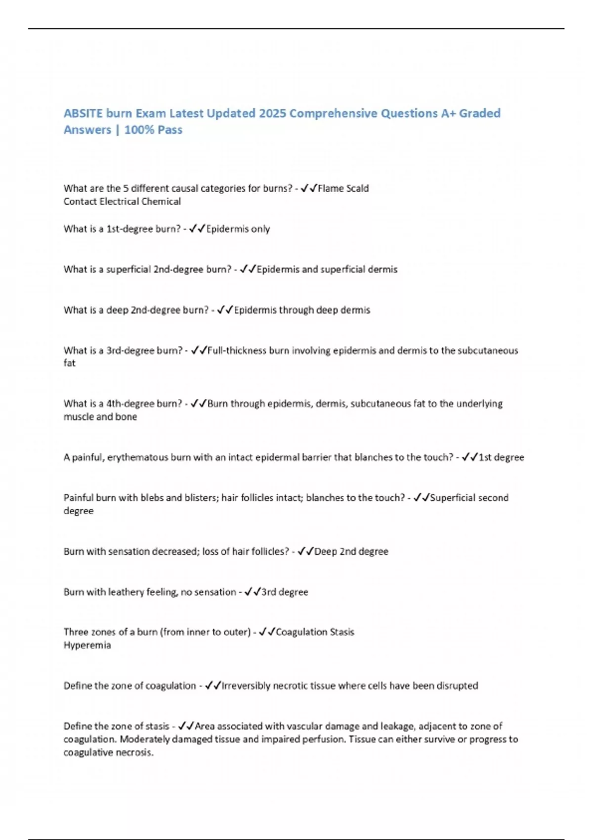 ABSITE burn Exam Latest Updated 2025 Comprehensive Questions A+ Graded Answers | 100% Pass