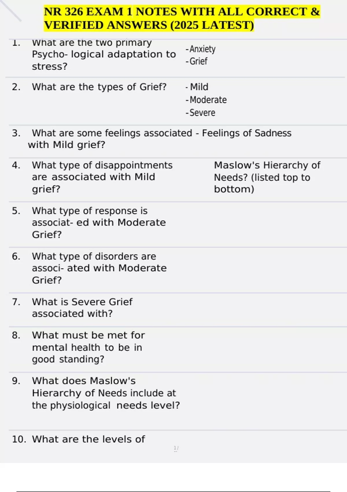 NR 326 EXAM 1 NOTES WITH ALL CORRECT &