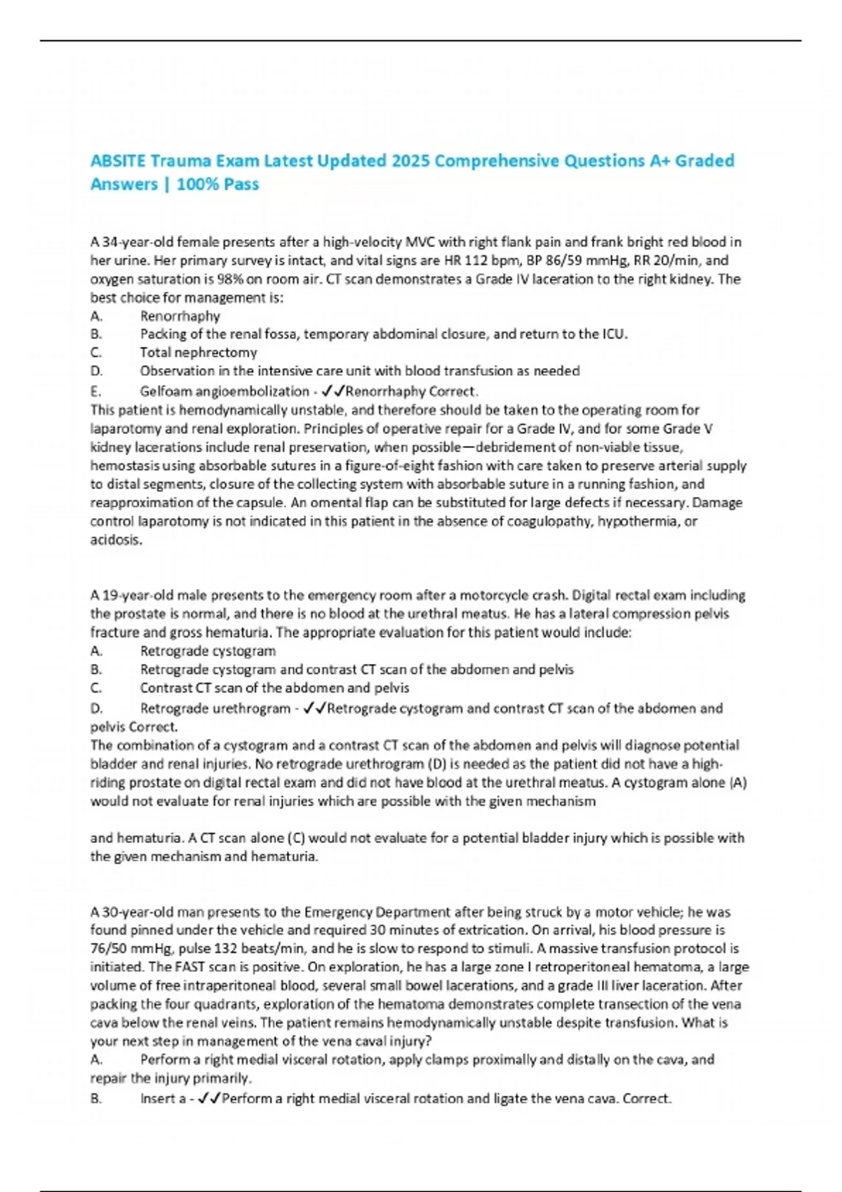 ABSITE Trauma Exam Latest Updated 2025 Comprehensive Questions A+ Graded Answers | 100% Pass