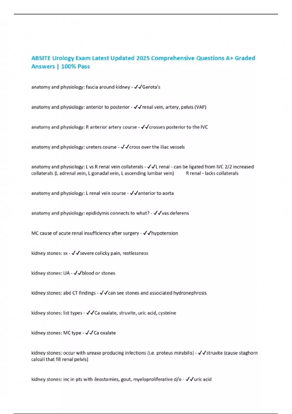 ABSITE Urology Exam Latest Updated 2025 Comprehensive Questions A+ Graded Answers | 100% Pass
