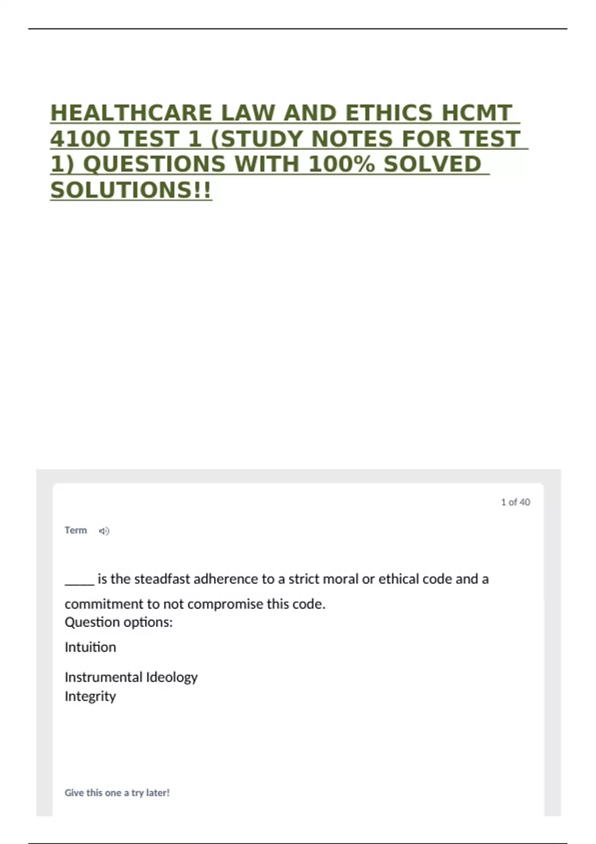 ____ is the steadfast adherence to a strict moral or ethical code and a