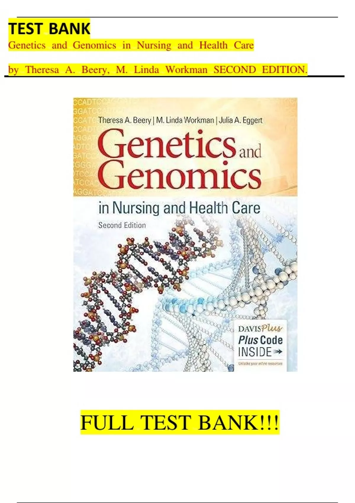 Test Bank For the Genetics and Genomics in Nursing and Health Care 2nd Edition by Theresa A Beery, M Linda Workman, Julia A Eggert||ISBN NO:13,978-0803660830||All Chapters||Complete Guide A+.