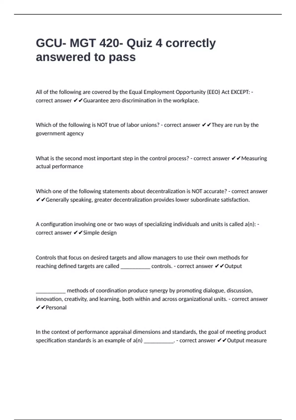 correct answer ✔✔Guarantee zero discrimination in the workplace.
