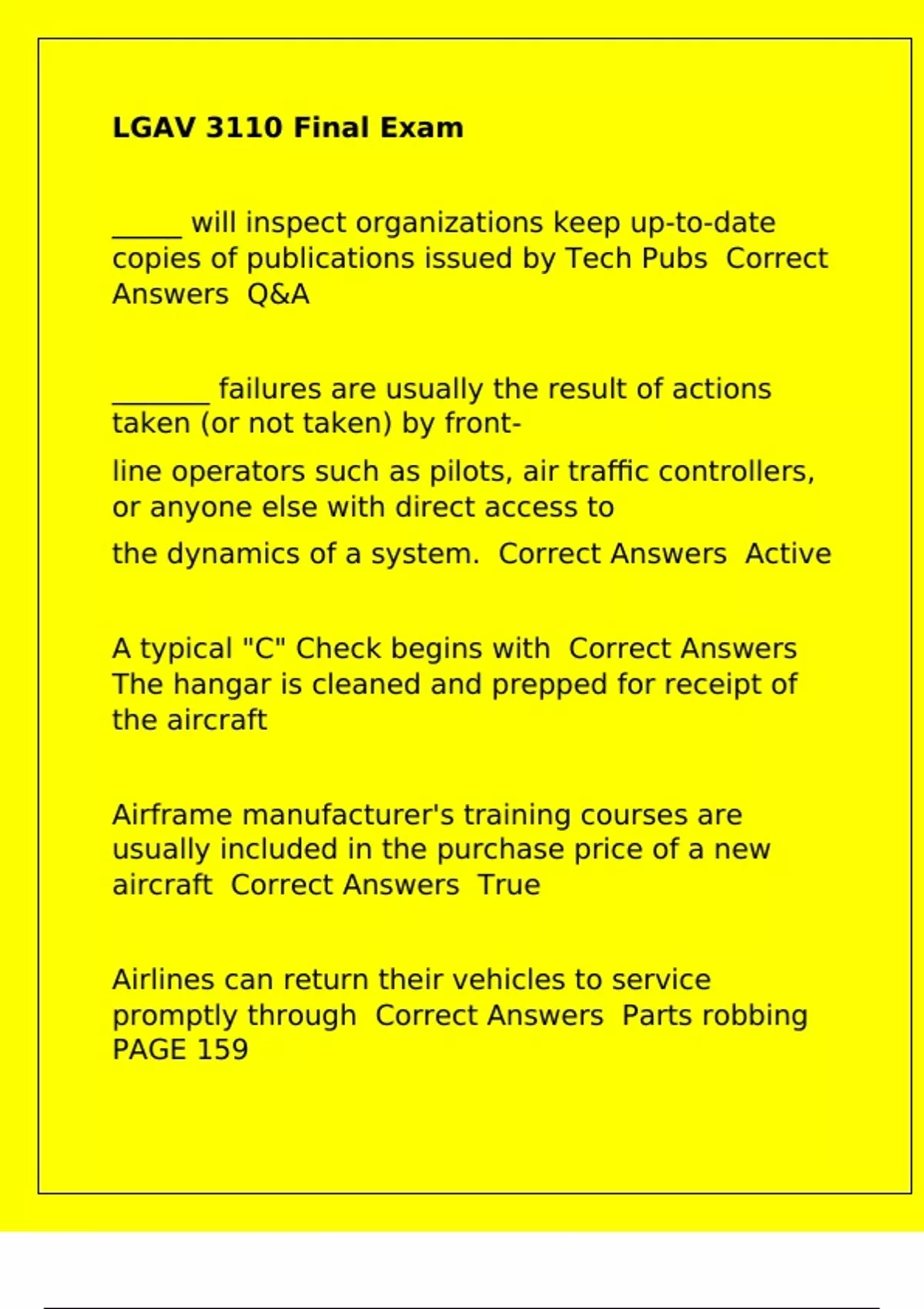 A typical "C" Check begins with Correct Answers