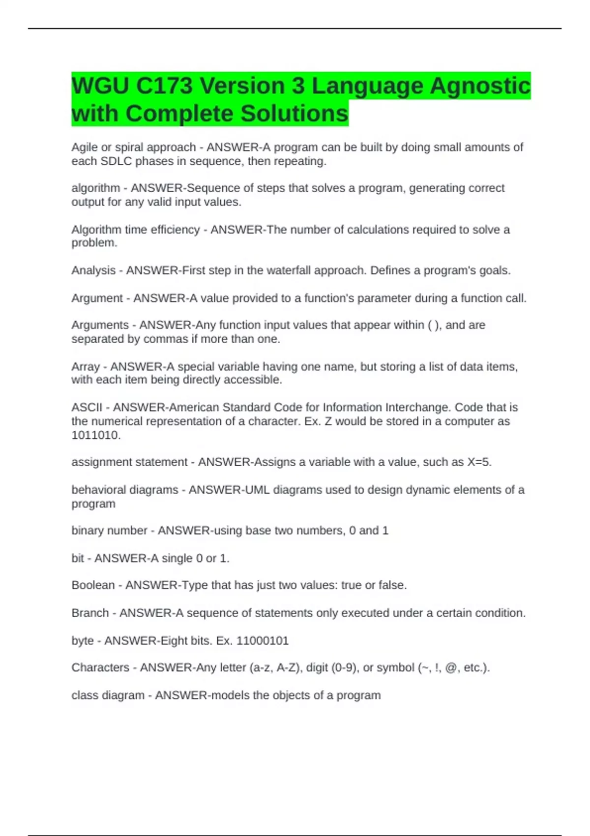 WGU C173 Version 3 Language Agnostic with Complete Solutions