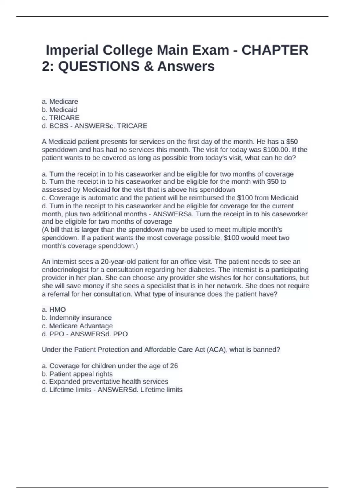 d. Medicaid - ANSWERSb. Group health plan