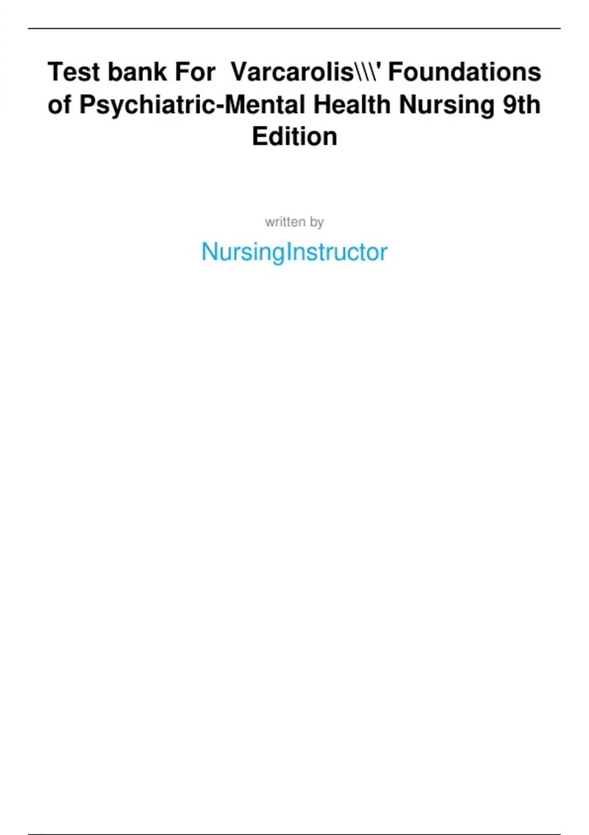 ,Test Bank Complete Varcarolis' Foundations of Psychiatric-Mental Health Nursing A