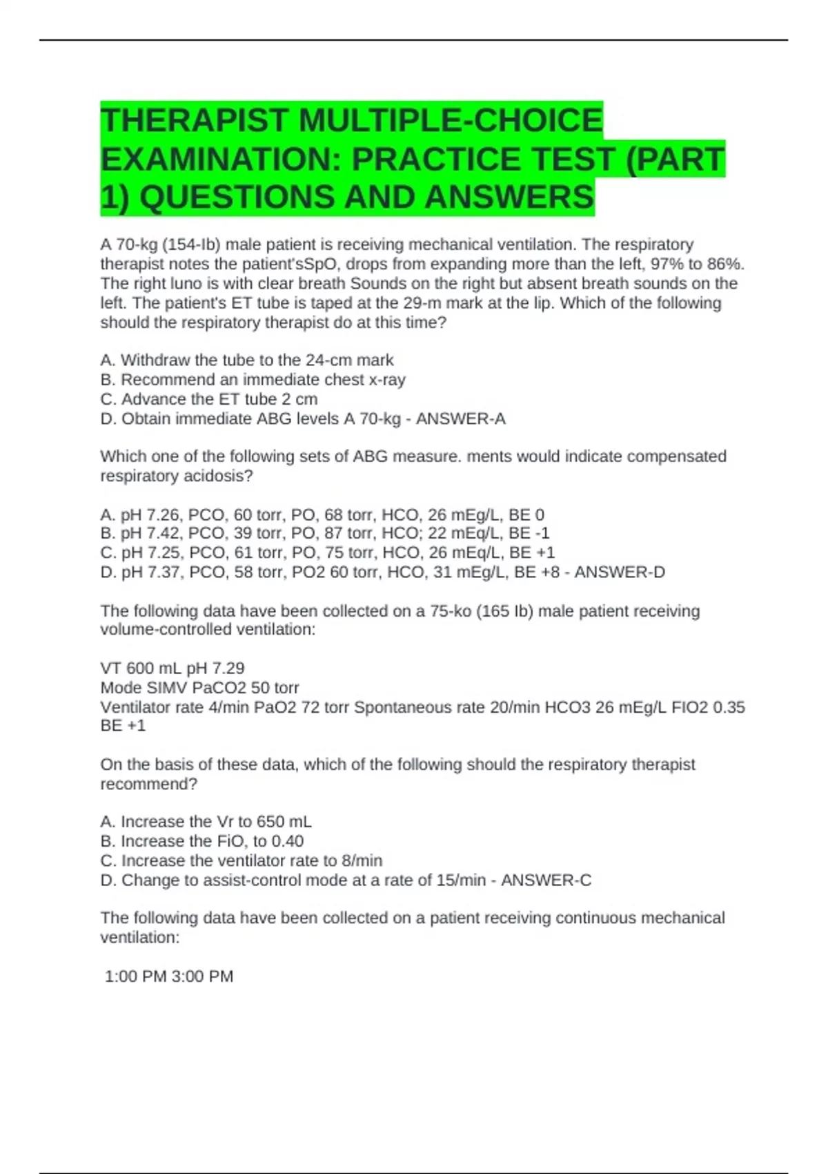 THERAPIST MULTIPLE-CHOICE EXAMINATION: PRACTICE TEST (PART 1) QUESTIONS AND ANSWERS