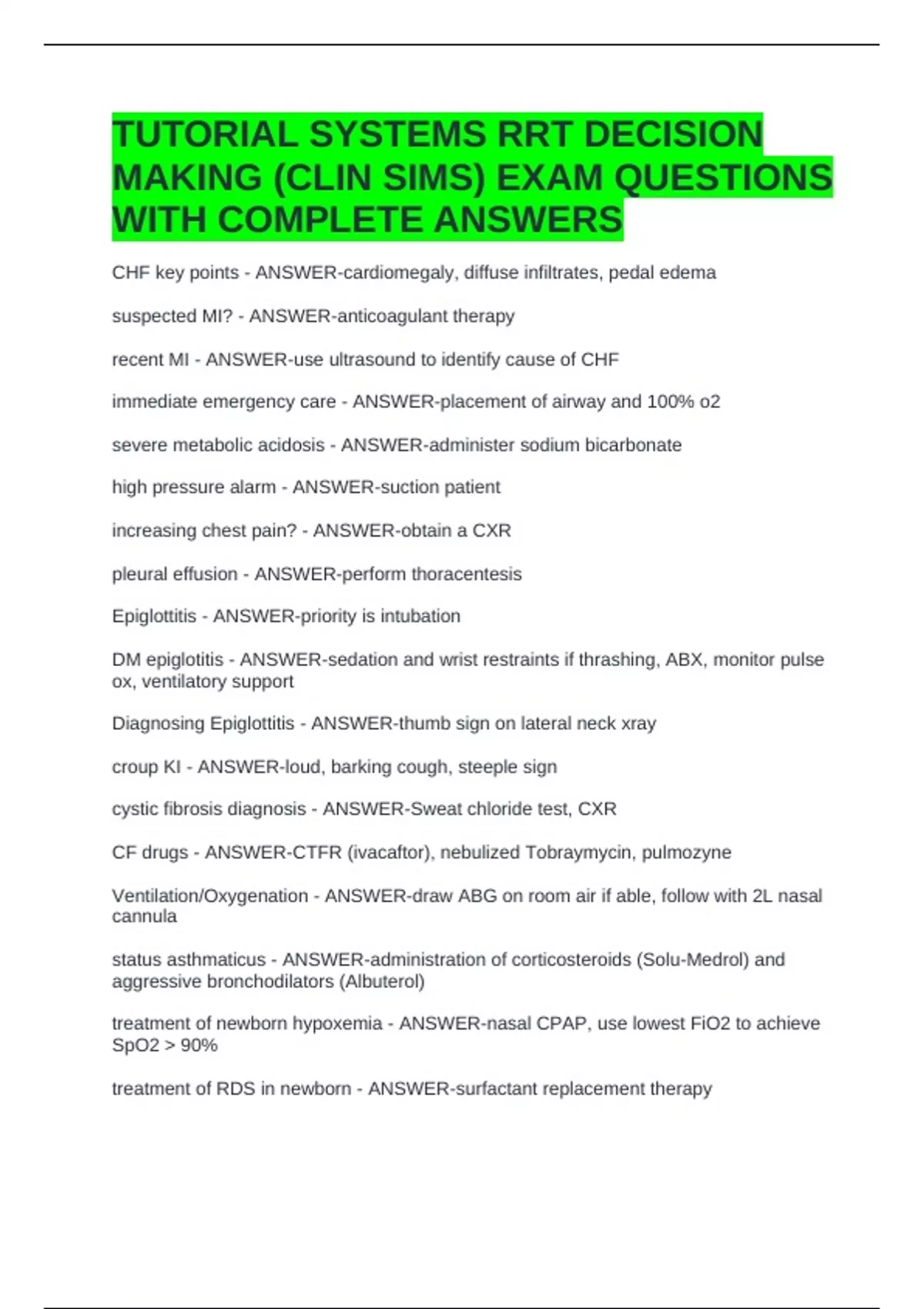 MAKING (CLIN SIMS) EXAM QUESTIONS