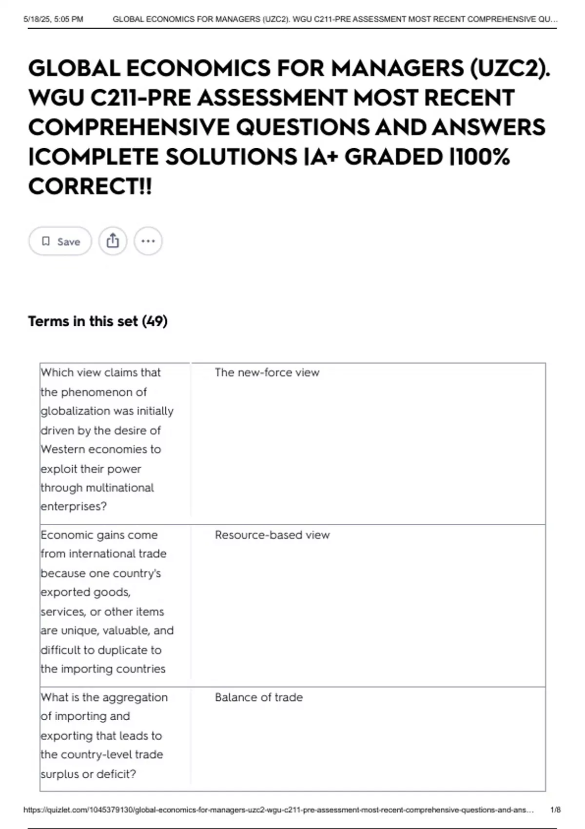 , 5/18/25, 5:05 PM GLOBAL ECONOMICS FOR MANAGERS (UZC2). WGU C211-PRE ASSESSMENT MOST RECENT COMPREHENSIVE QU…