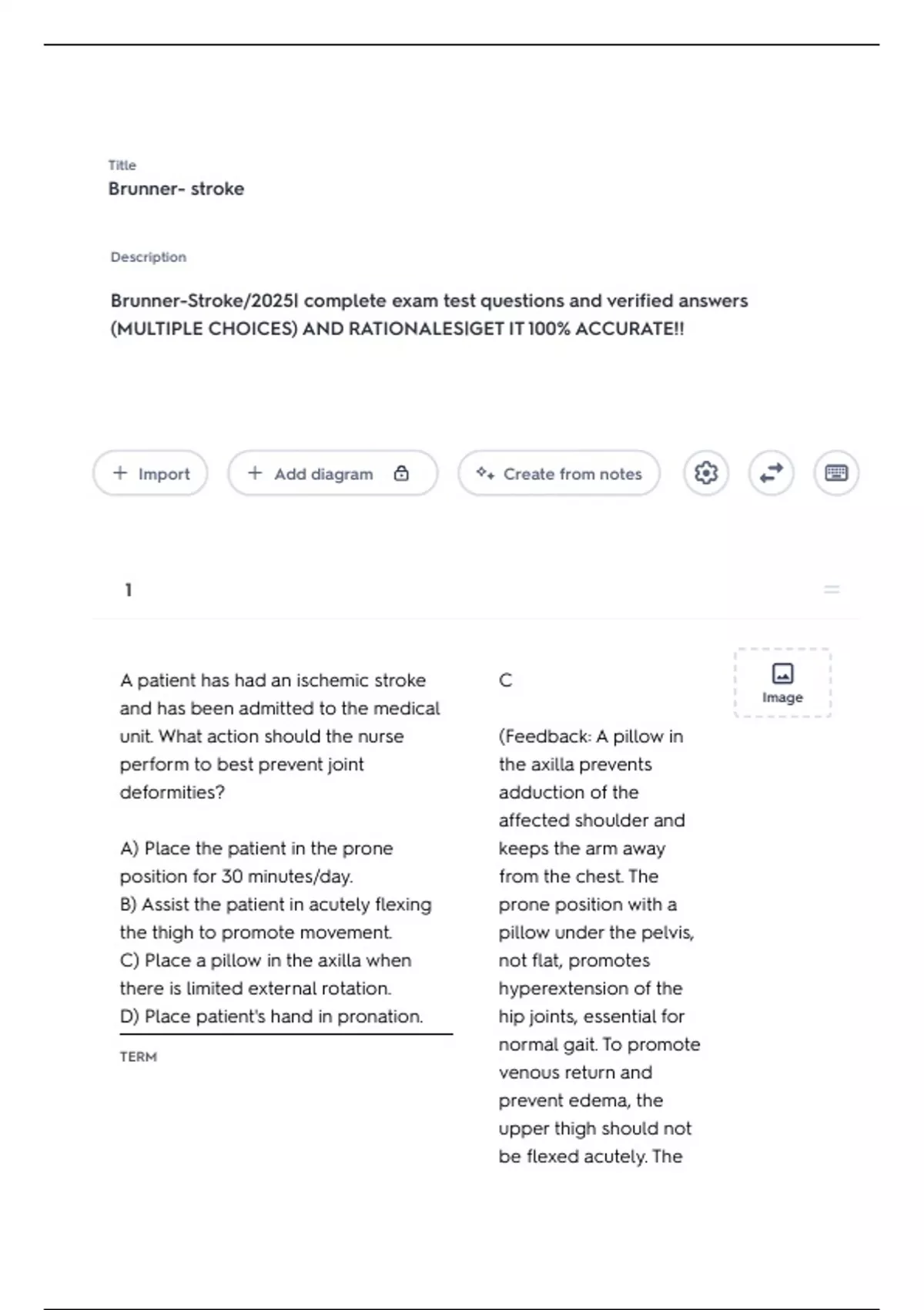 Brunner-Stroke/2025| complete exam test questions and verified answers (MULTIPLE CHOICES) AND RATIONALES|GET IT 100% ACCURATE!!