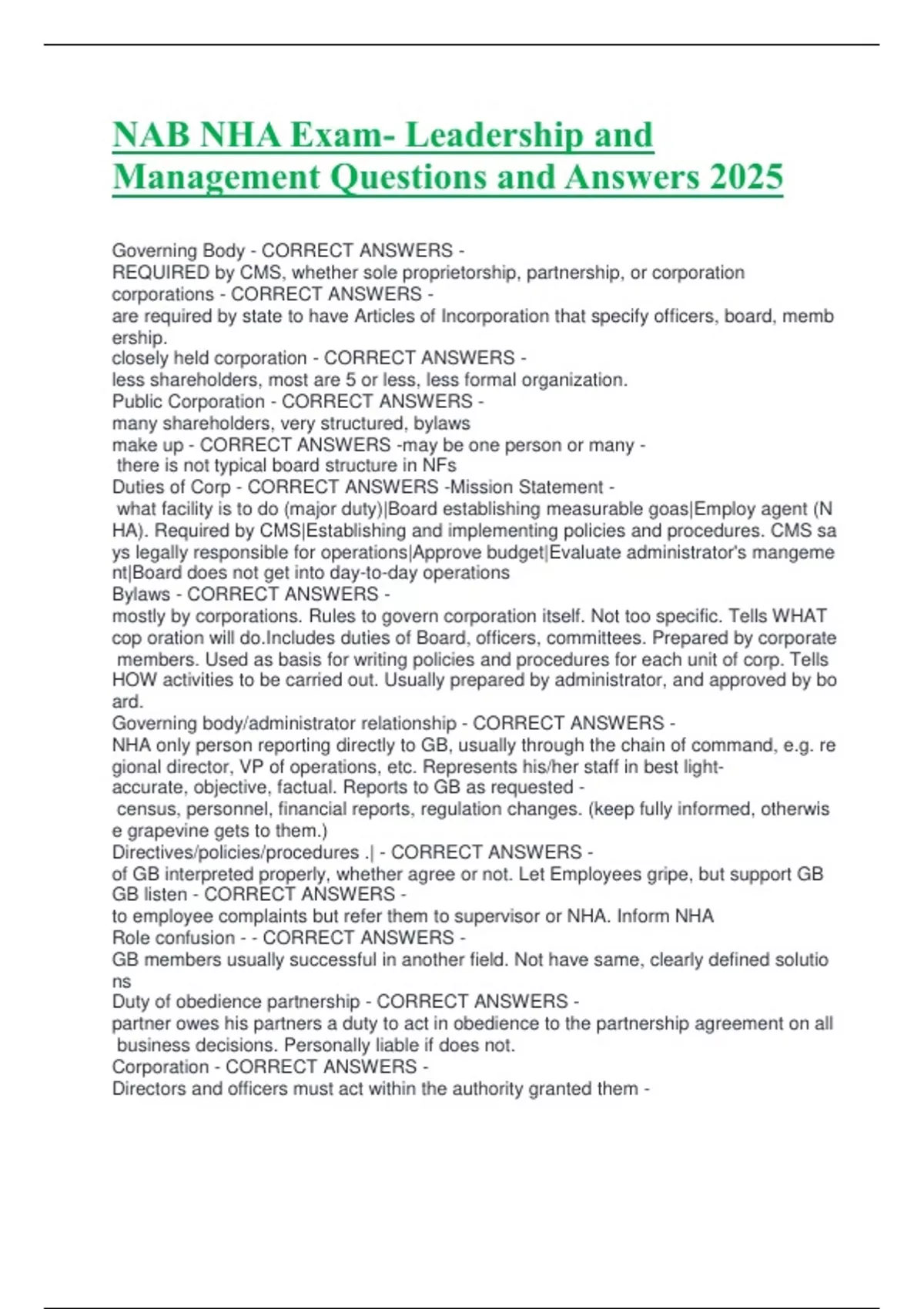 NAB NHA Exam- Leadership and