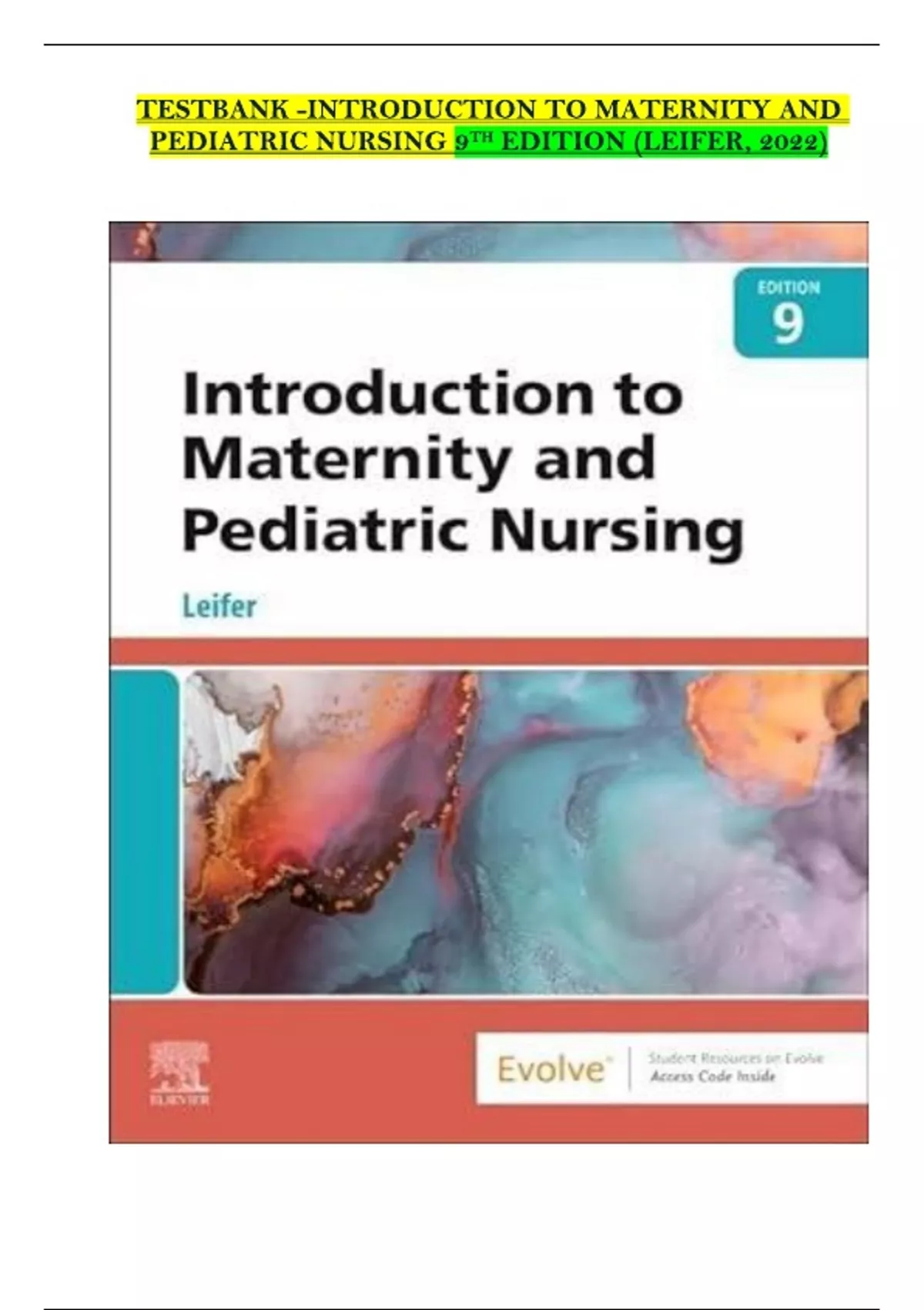 TESTBANK -INTRODUCTION TO MATERNITY AND PEDIATRIC NURSING 9TH EDITION (LEIFER, 2022)