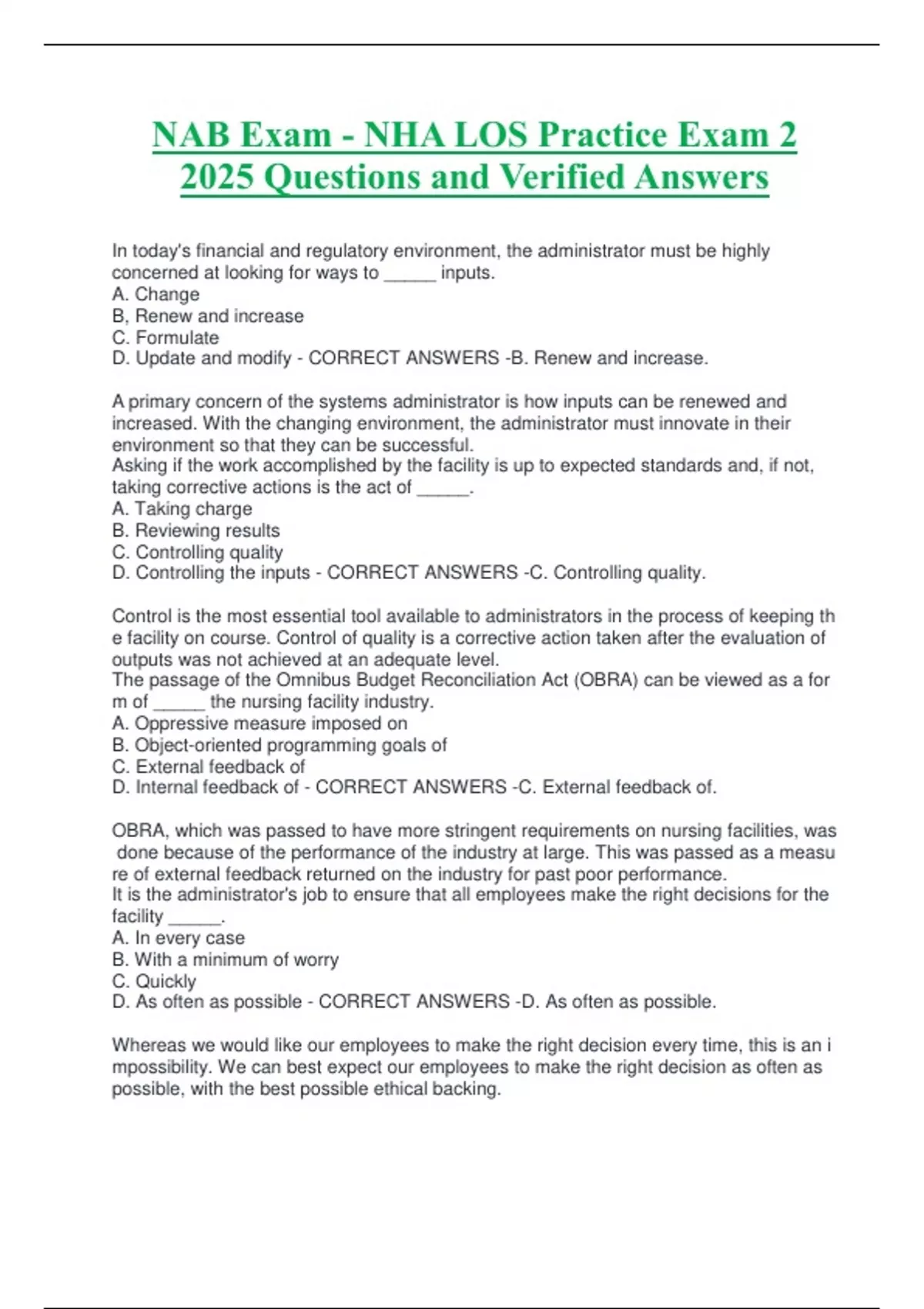 NAB Exam - NHA LOS Practice Exam 2 2025 Questions and Verified Answers