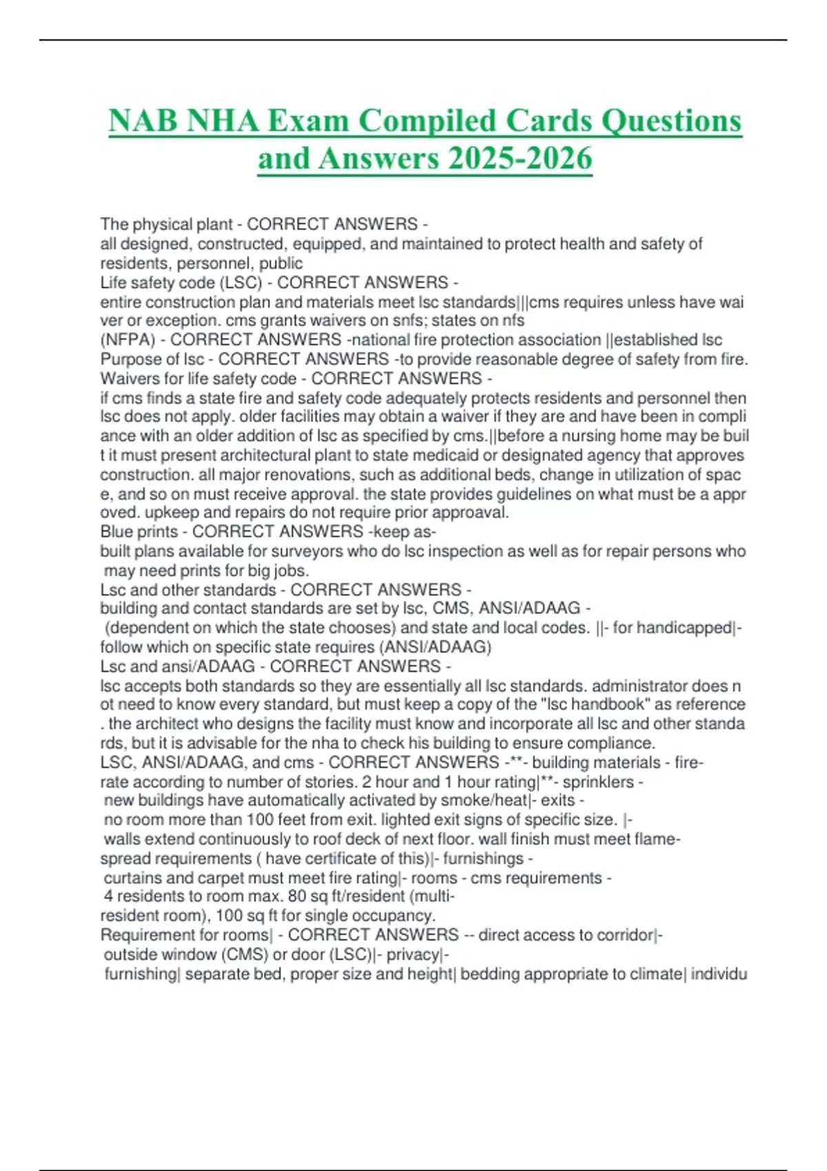 NAB NHA Exam Compiled Cards Questions and Answers 2025