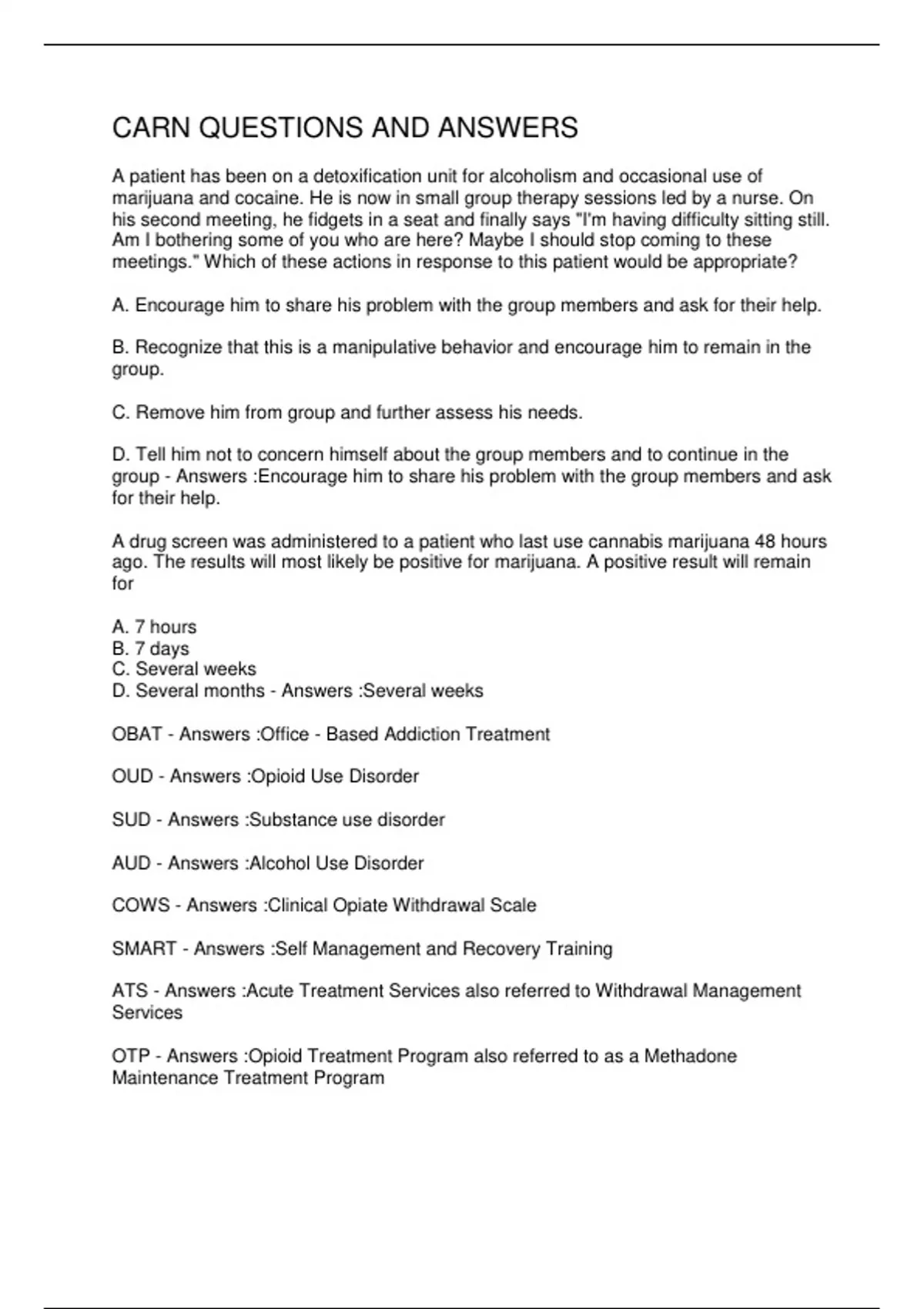 OBAT - Answers :Office - Based Addiction Treatment