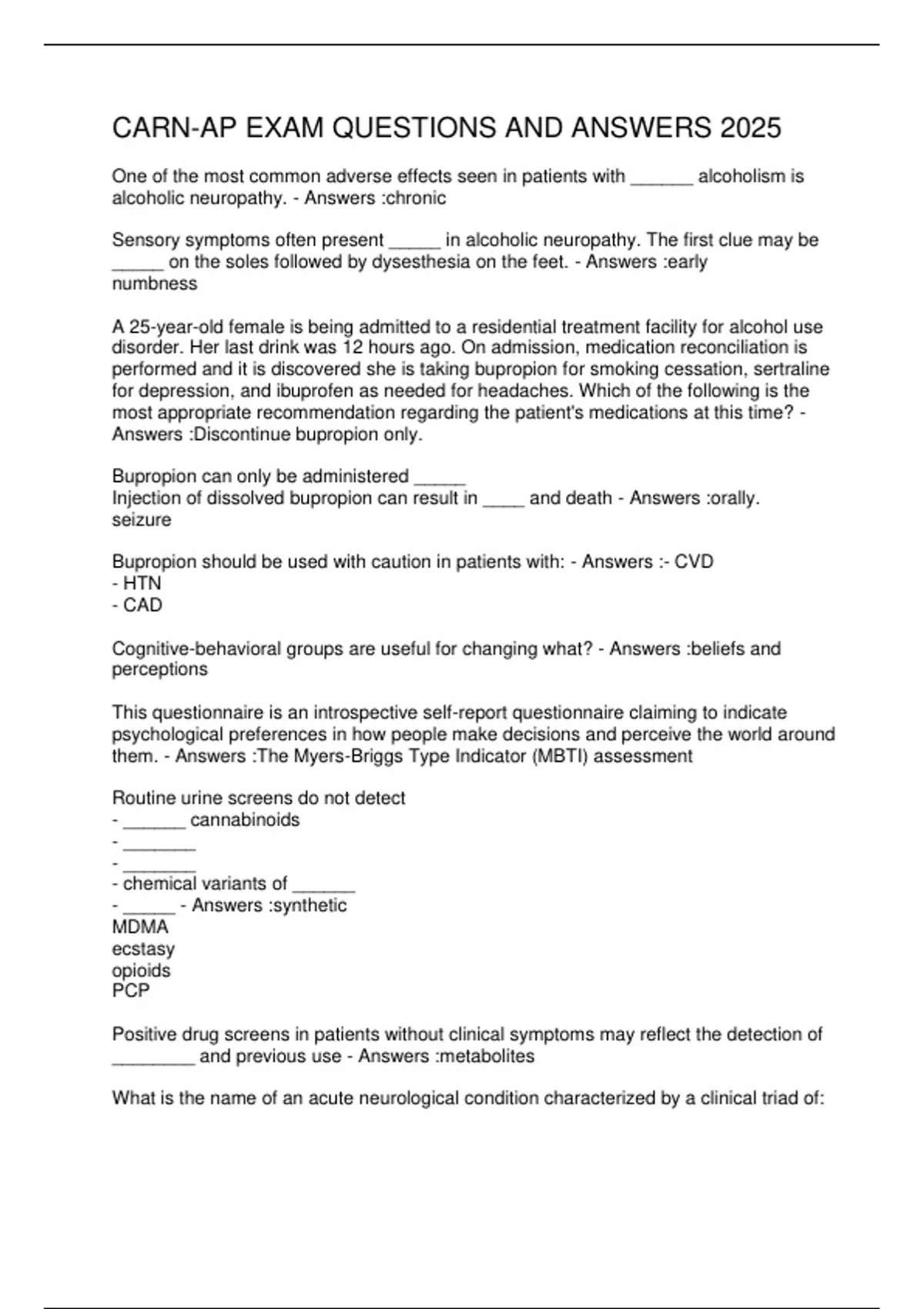 CARN-AP EXAM QUESTIONS AND ANSWERS 2025
