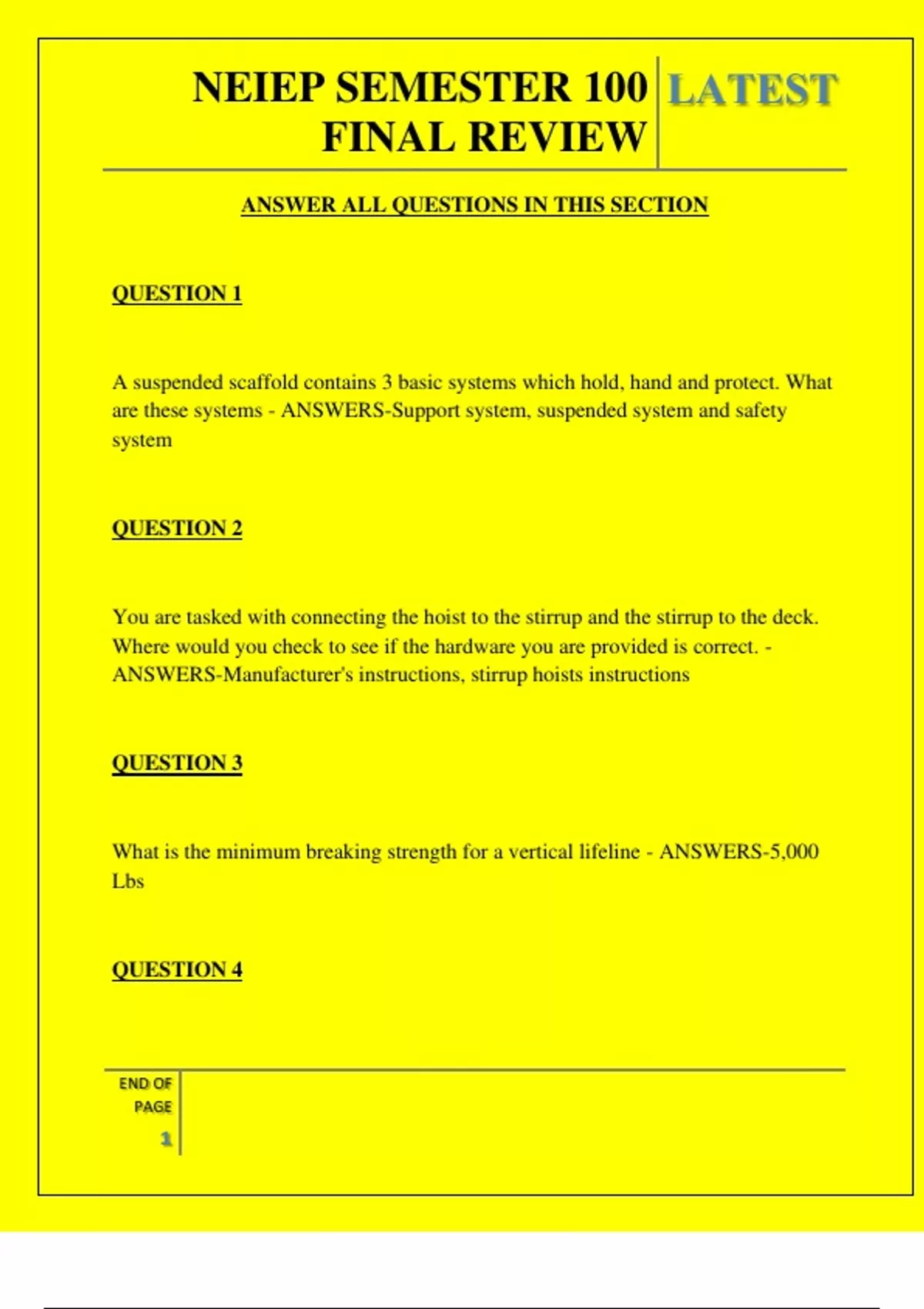 NEIEP Semester 100 Final Review – Scaffold Safety, Elevator Systems, and Technical Knowledge Q&A Guide