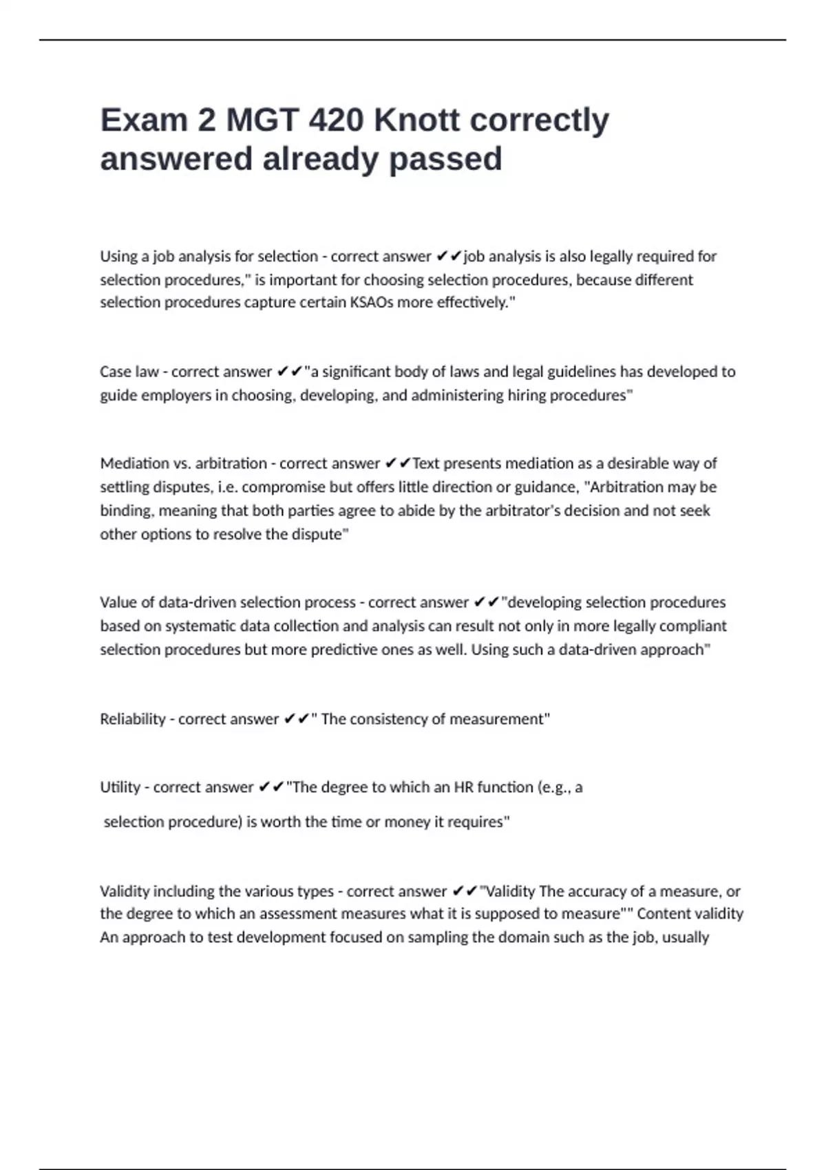 Mediation vs. arbitration - correct answer ✔✔Text presents mediation as a desirable way of