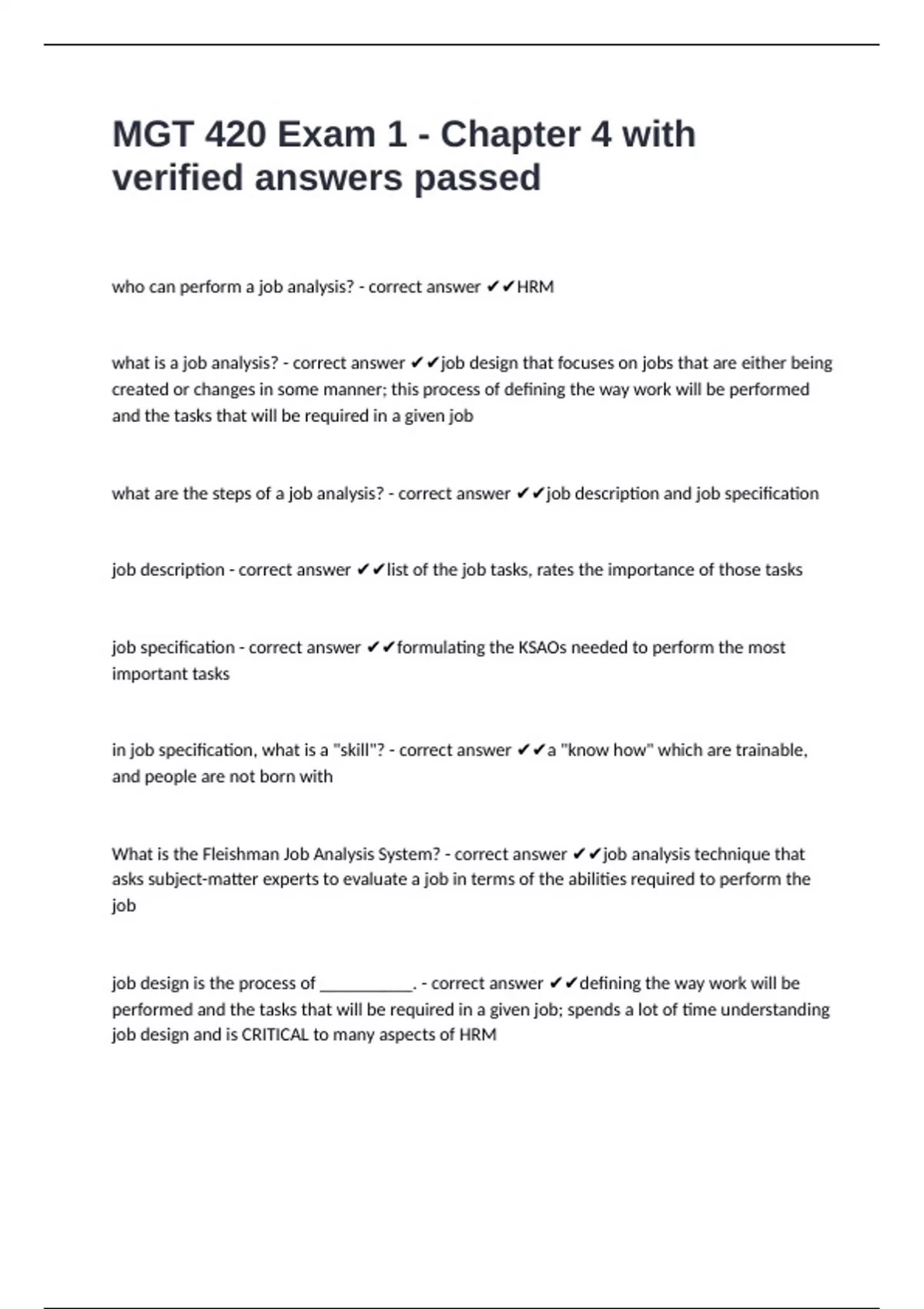 what are the steps of a job analysis? - correct answer ✔✔job description and job specification