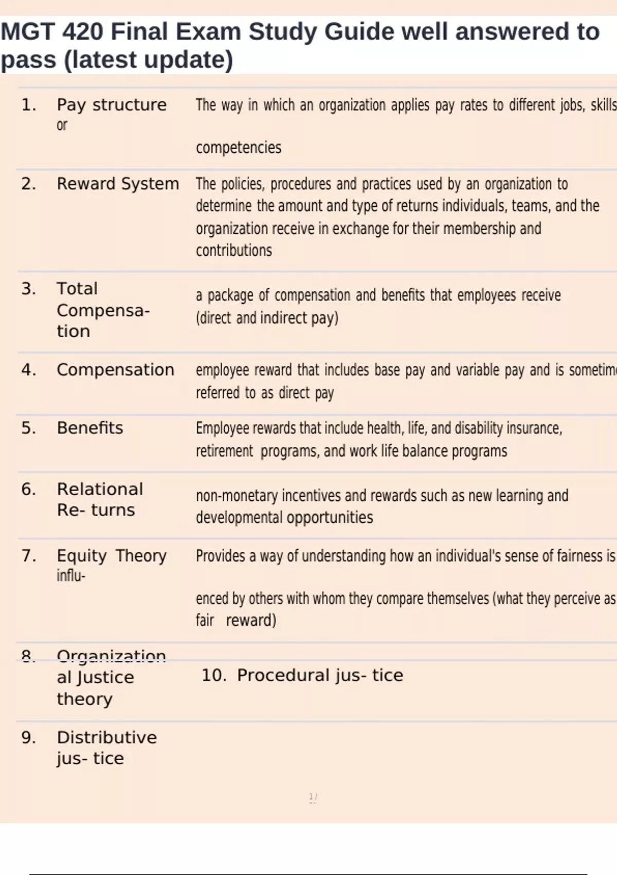 ,MGT 420 Final Exam Study Guide well answered to