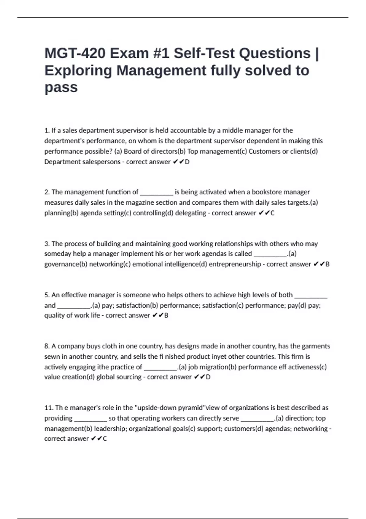 MGT-420 Exam #1 Self-Test Questions |