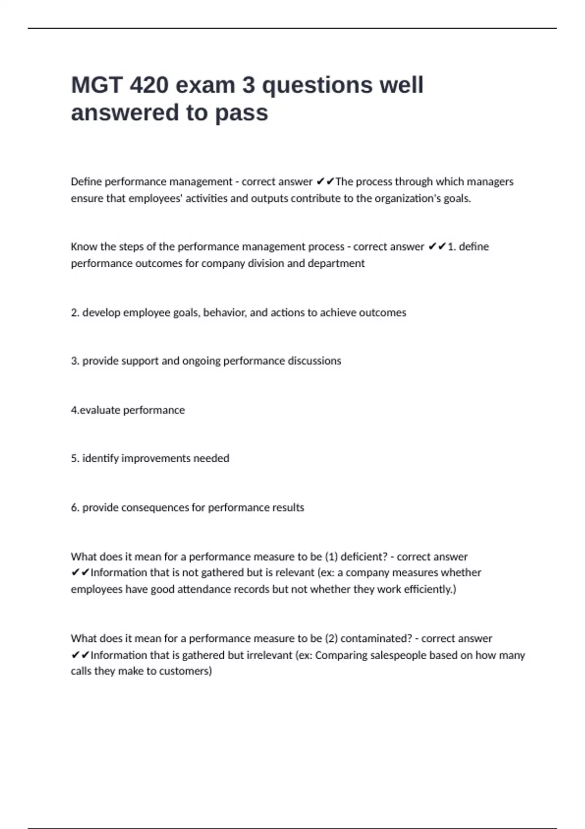 MGT 420 exam 3 questions well