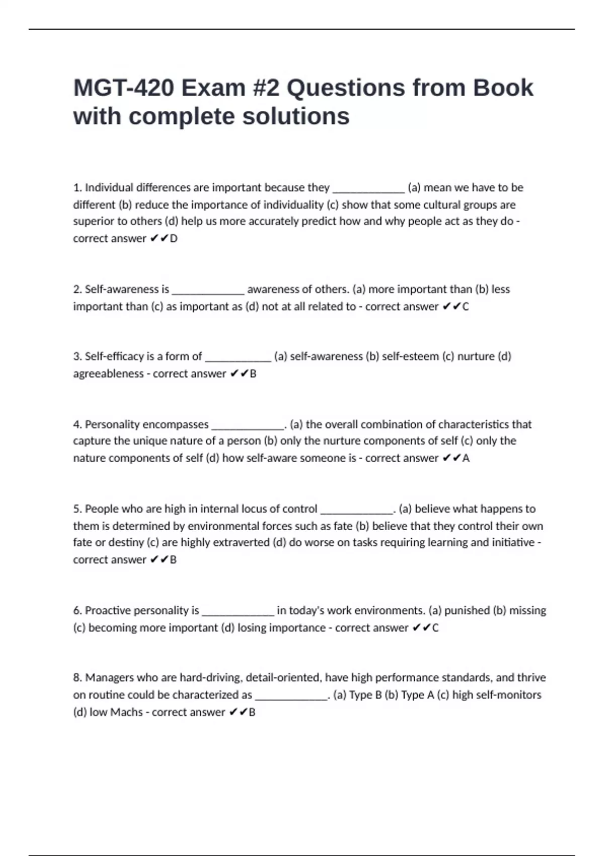 5. People who are high in internal locus of control ____________. (a) believe what happens to