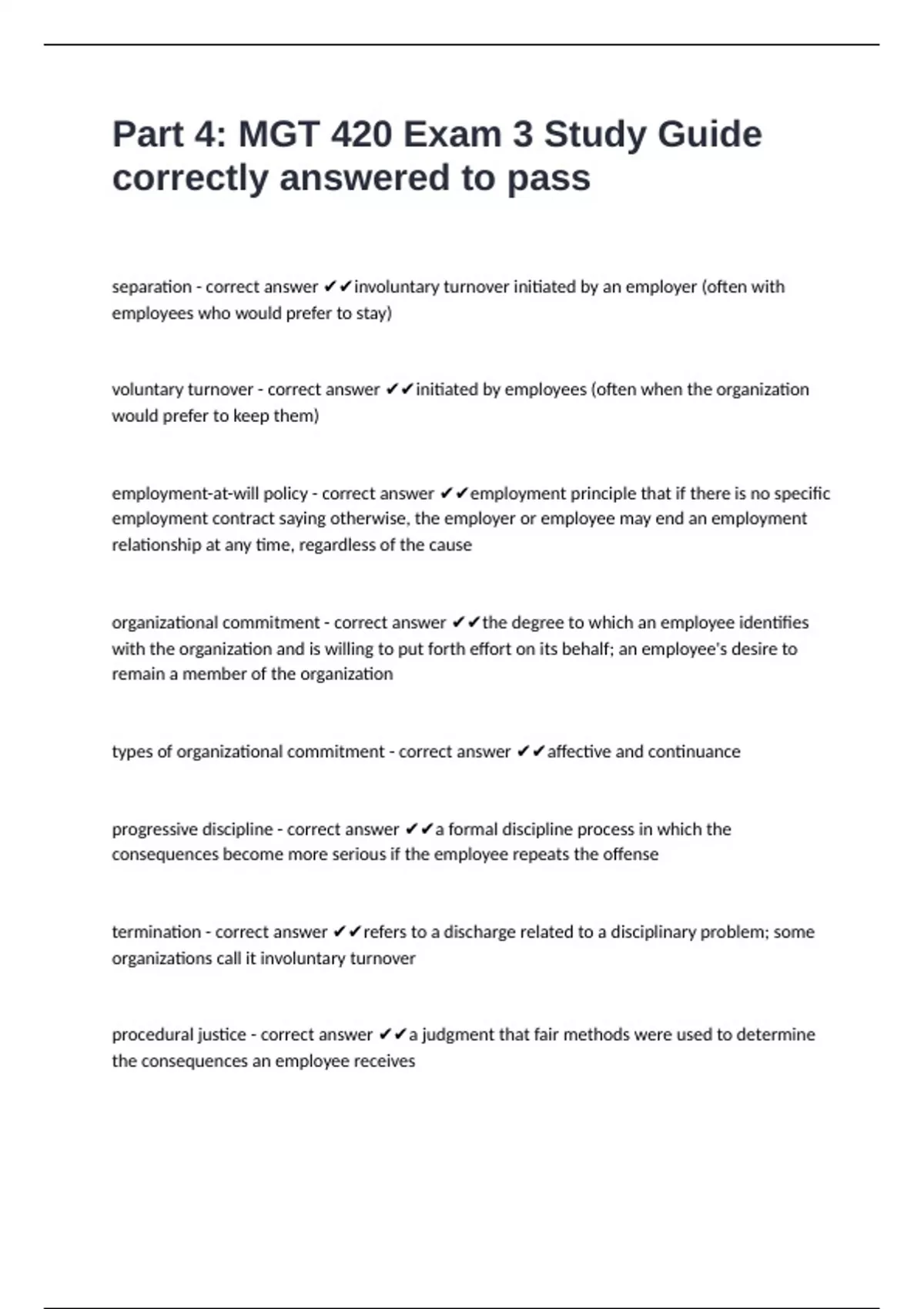 Part 4: MGT 420 Exam 3 Study Guide correctly answered to pass