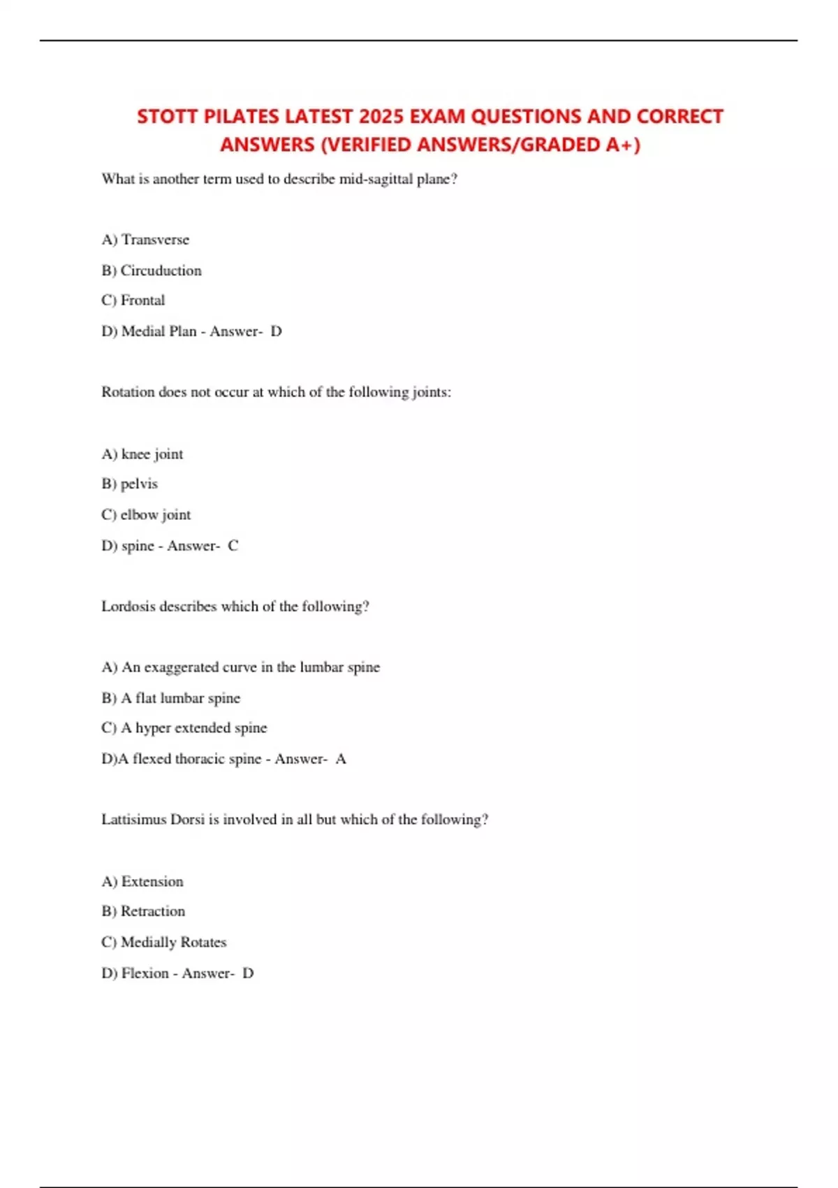 STOTT PILATES LATEST 2025 EXAM QUESTIONS AND CORRECT