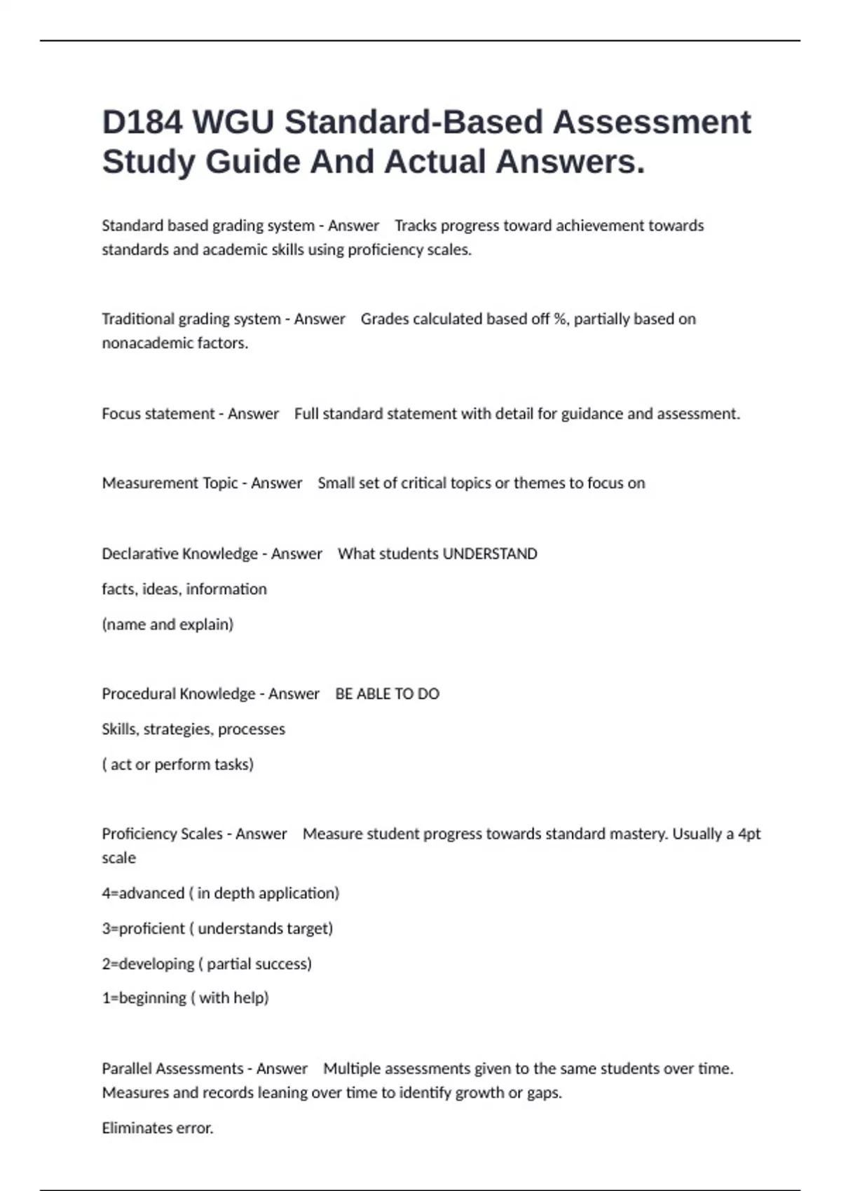 D184 WGU Standard-Based Assessment Study Guide And Actual Answers.