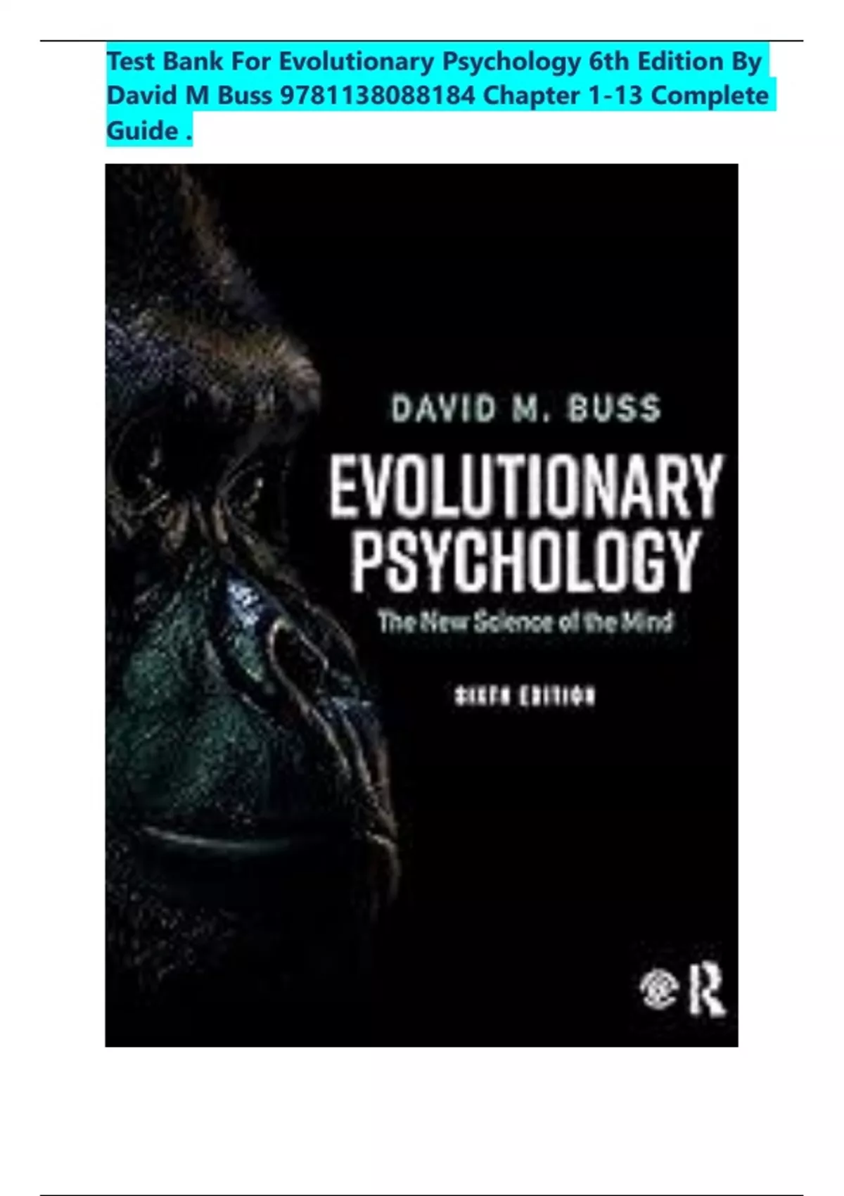 This document is the complete test bank for Evolutionary Psychology: The New Science of the Mind (6th Edition) by David M. Buss. It includes multiple-choice questions, true/false statements, and detailed answers for every chapter from 1 to 13. Topics covered include natural and sexual selection, evolved psychological mechanisms, survival problems, mating strategies, kinship, and group living. This resource is ideal for students preparing for quizzes, exams, or reviewing key concepts from the textbook.