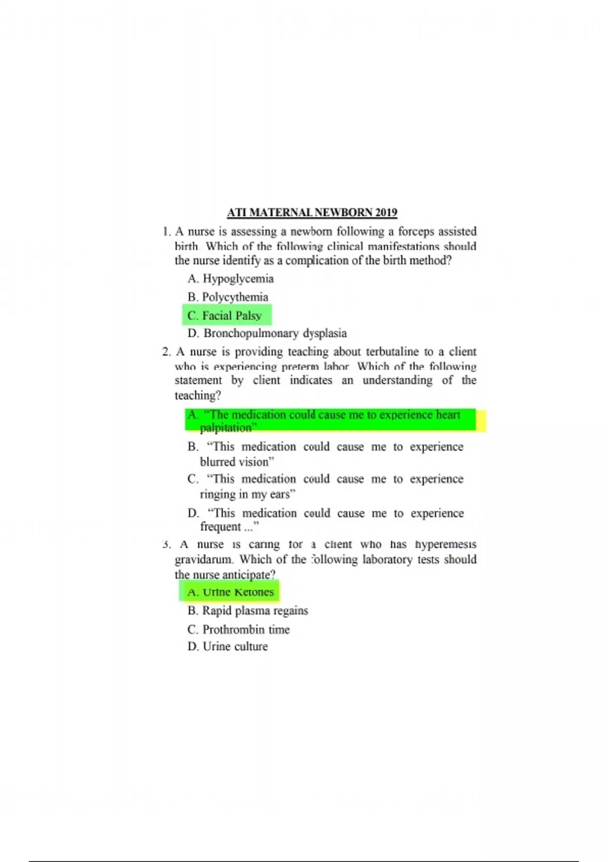 ATI MATERNAL NEWBORN