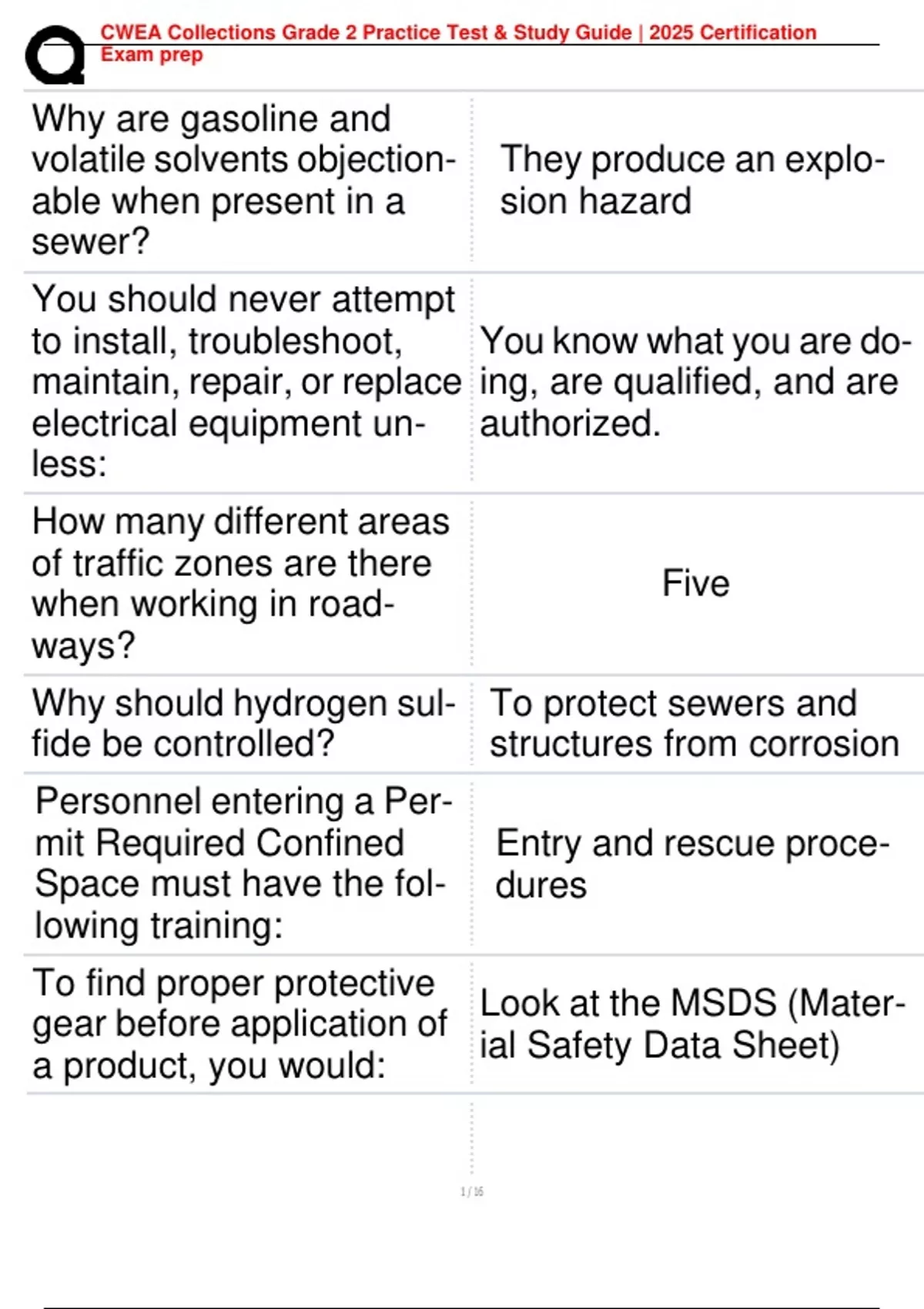 CWEA Collections Grade 2 Practice Test & Study Guide | 2025 Certification Exam prep Ace your CWEA Collections Grade 2 Certification Exam with this expertly crafted practice test and study guide. Covers sewer system operations, safety protocols, equipment maintenance, hydraulics, and regulations. Designed for 2025 exam success with realistic questions and detailed answer explanations.