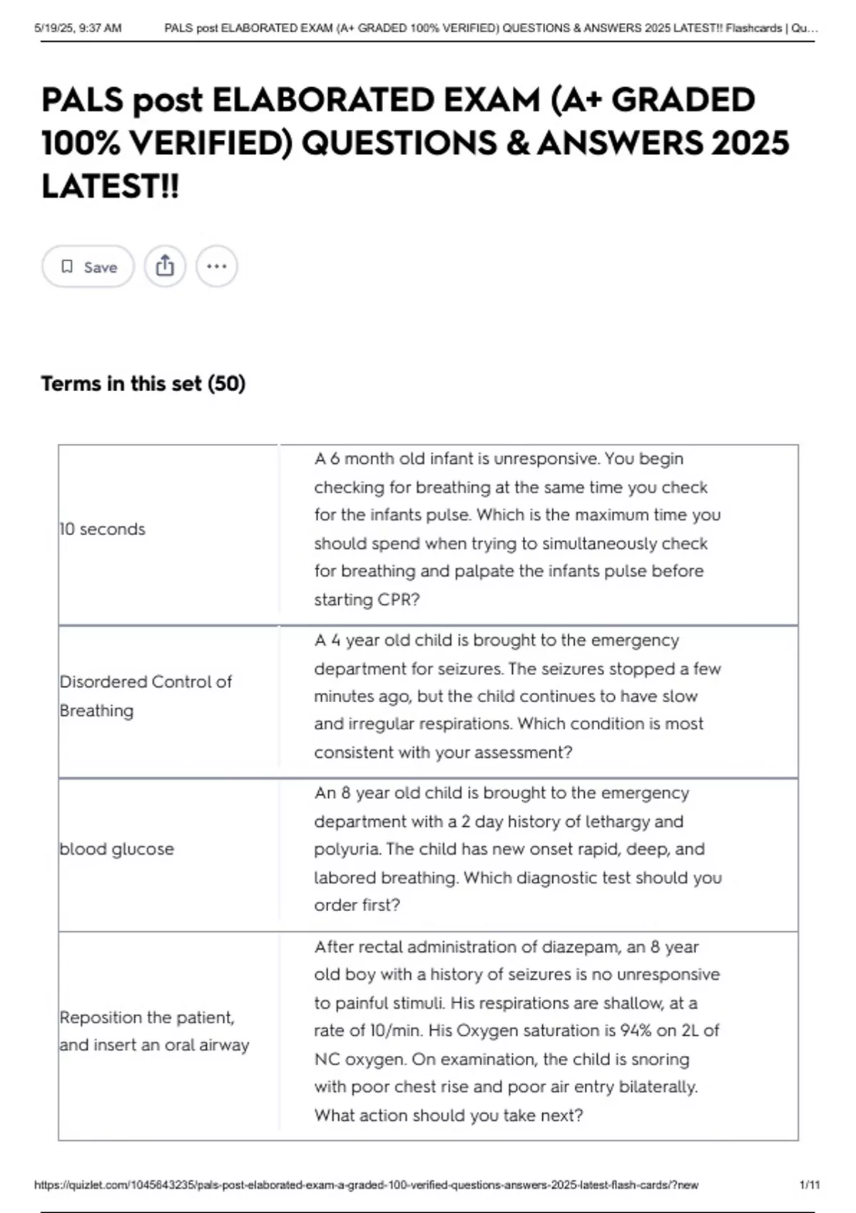 , 5/19/25, 9:37 AM PALS post ELABORATED EXAM (A+ GRADED 100% VERIFIED) QUESTIONS & ANSWERS 2025 LATEST!! Flashcards | Qu…