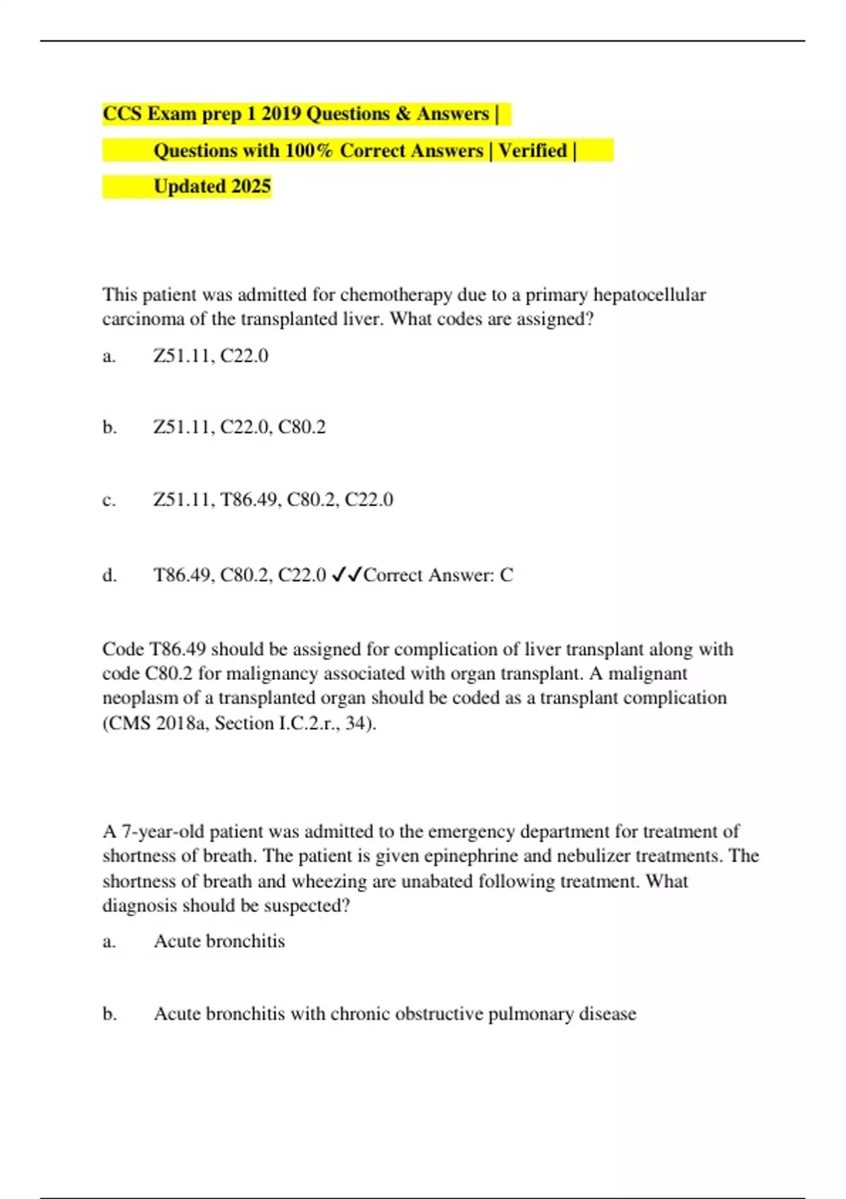 d. T86.49, C80.2, C22.0 ✔✔Correct Answer: C