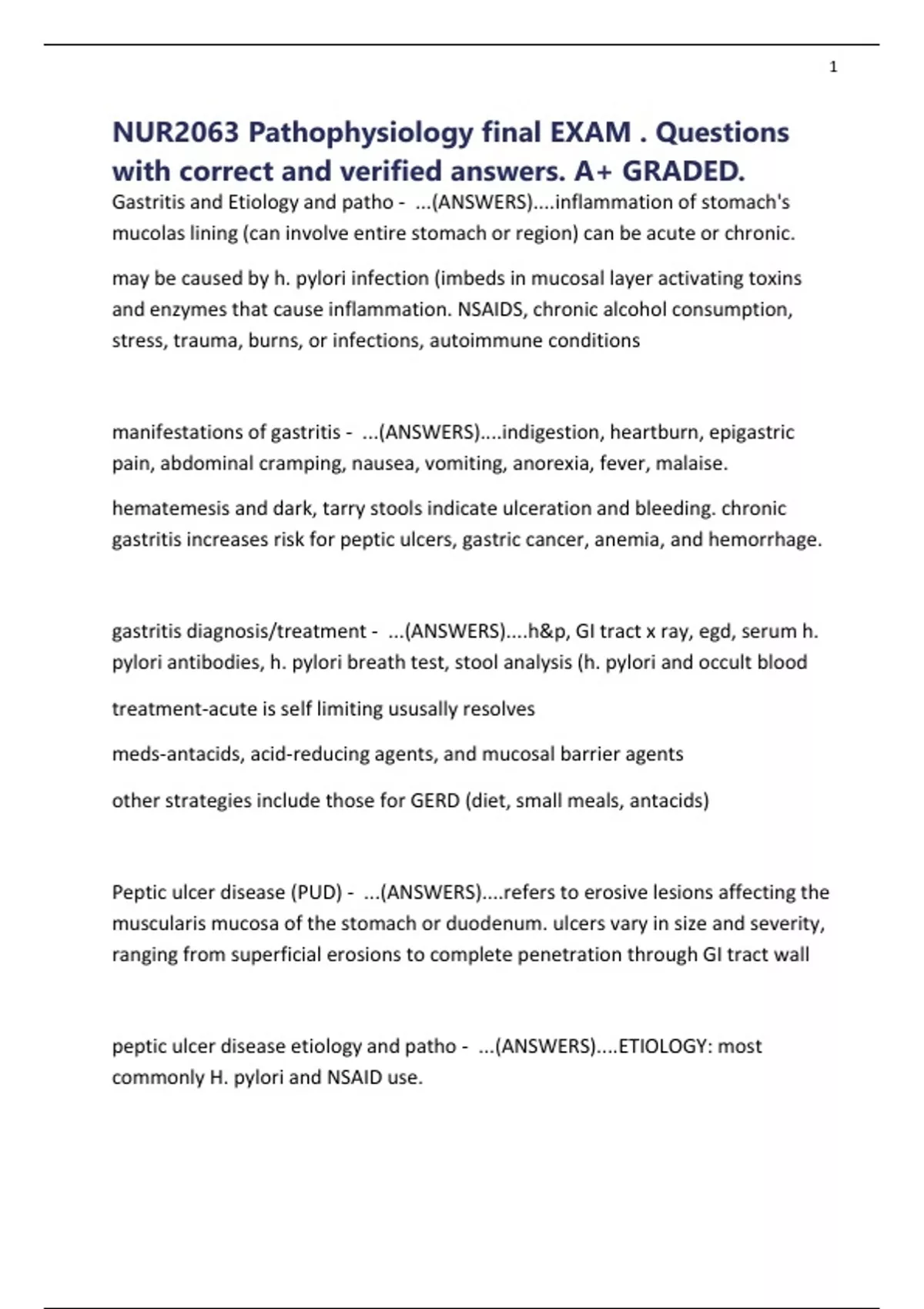 Gastritis and Etiology and patho - ...(ANSWERS)....inflammation of stomach's