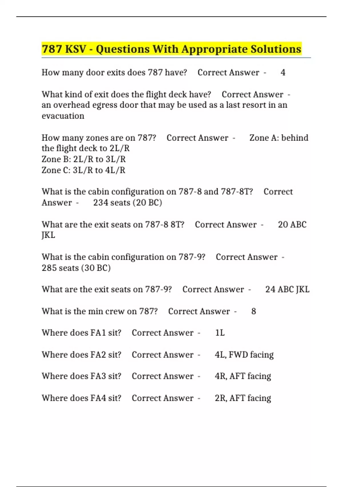 What are the exit seats on 787-9? Correct Answer - 24 ABC JKL