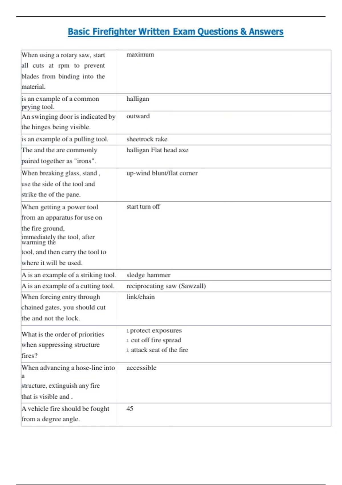 Basic Firefighter Written Exam Questions & Answers