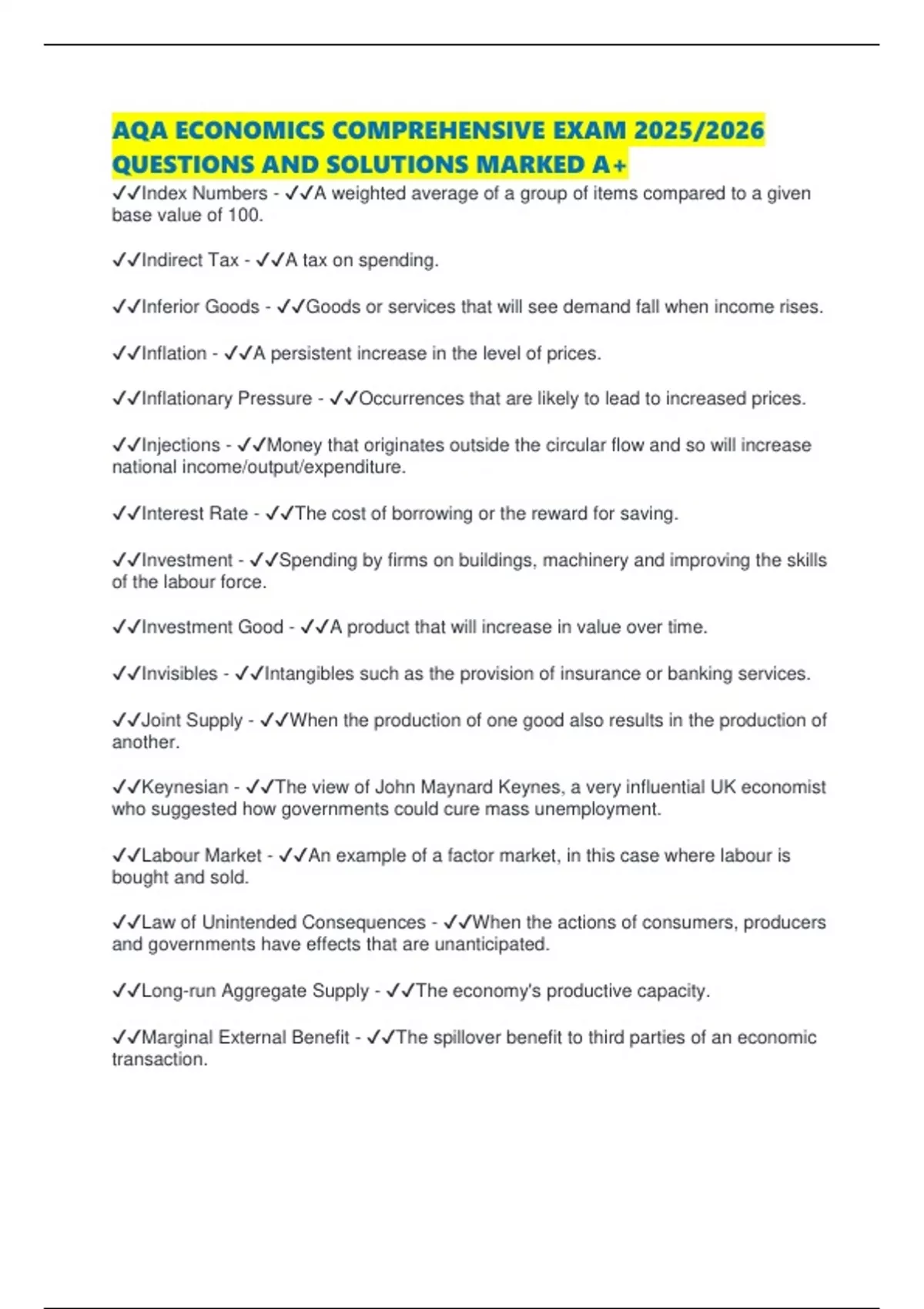 ✔✔Inflation - ✔✔A persistent increase in the level of prices.