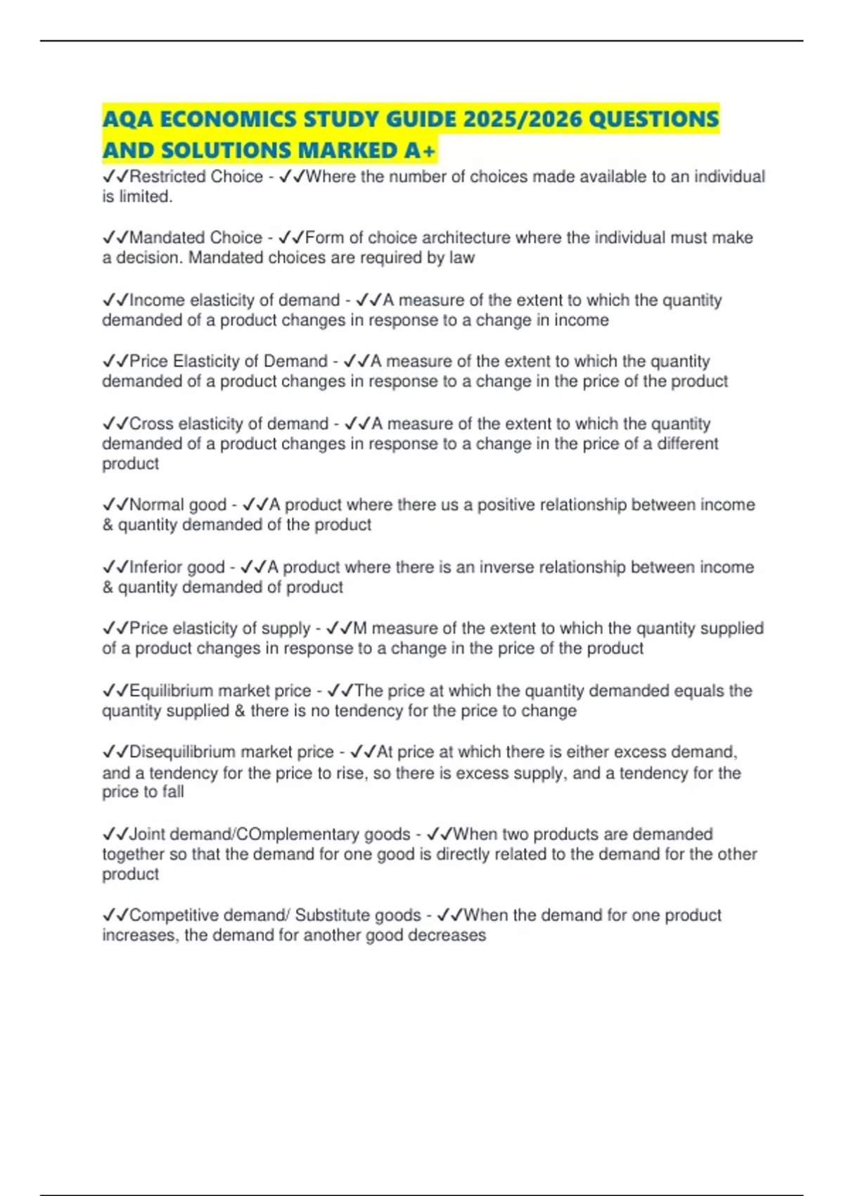 ✔✔Equilibrium market price - ✔✔The price at which the quantity demanded equals the