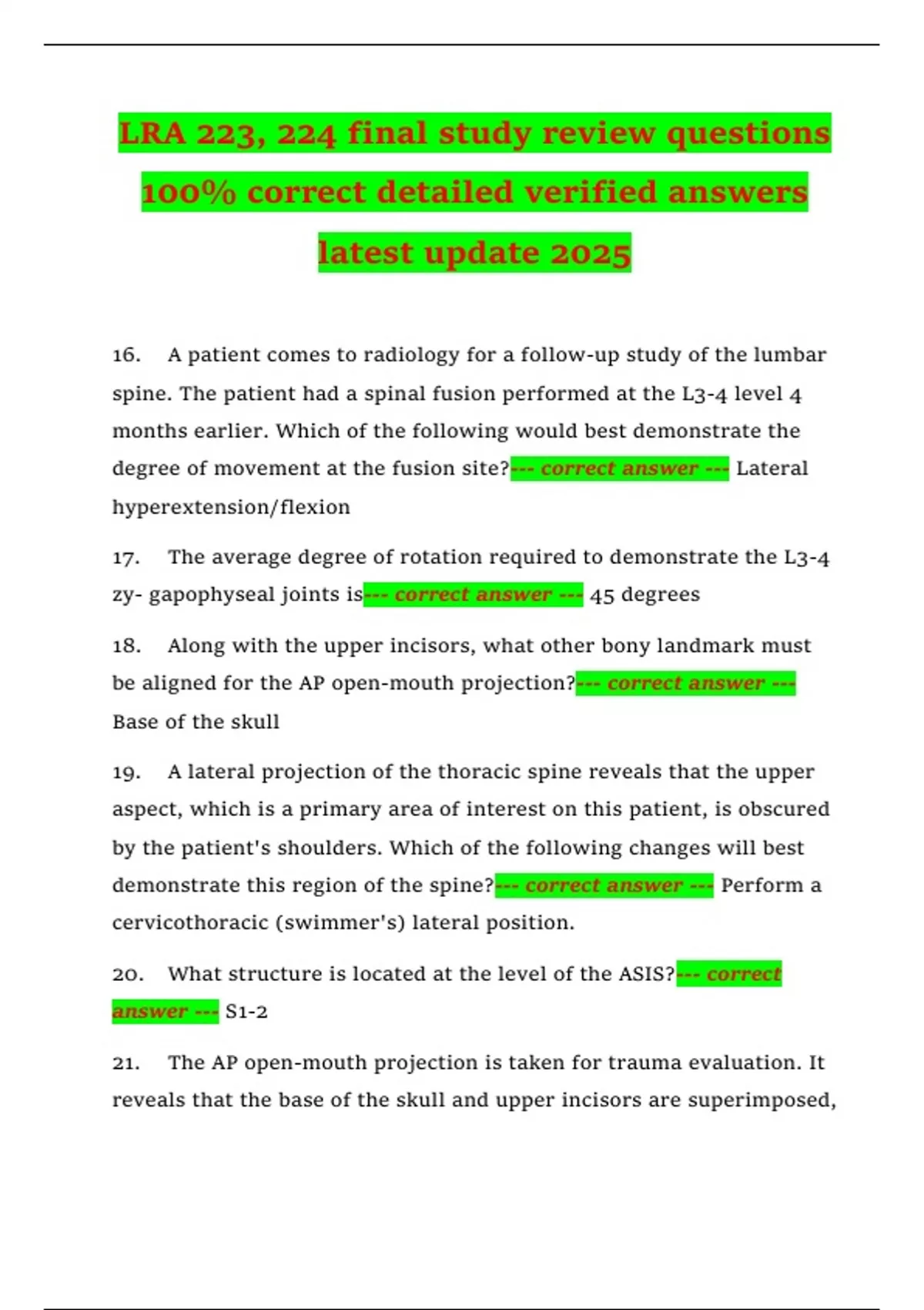 16. A patient comes to radiology for a follow-up study of the lumbar