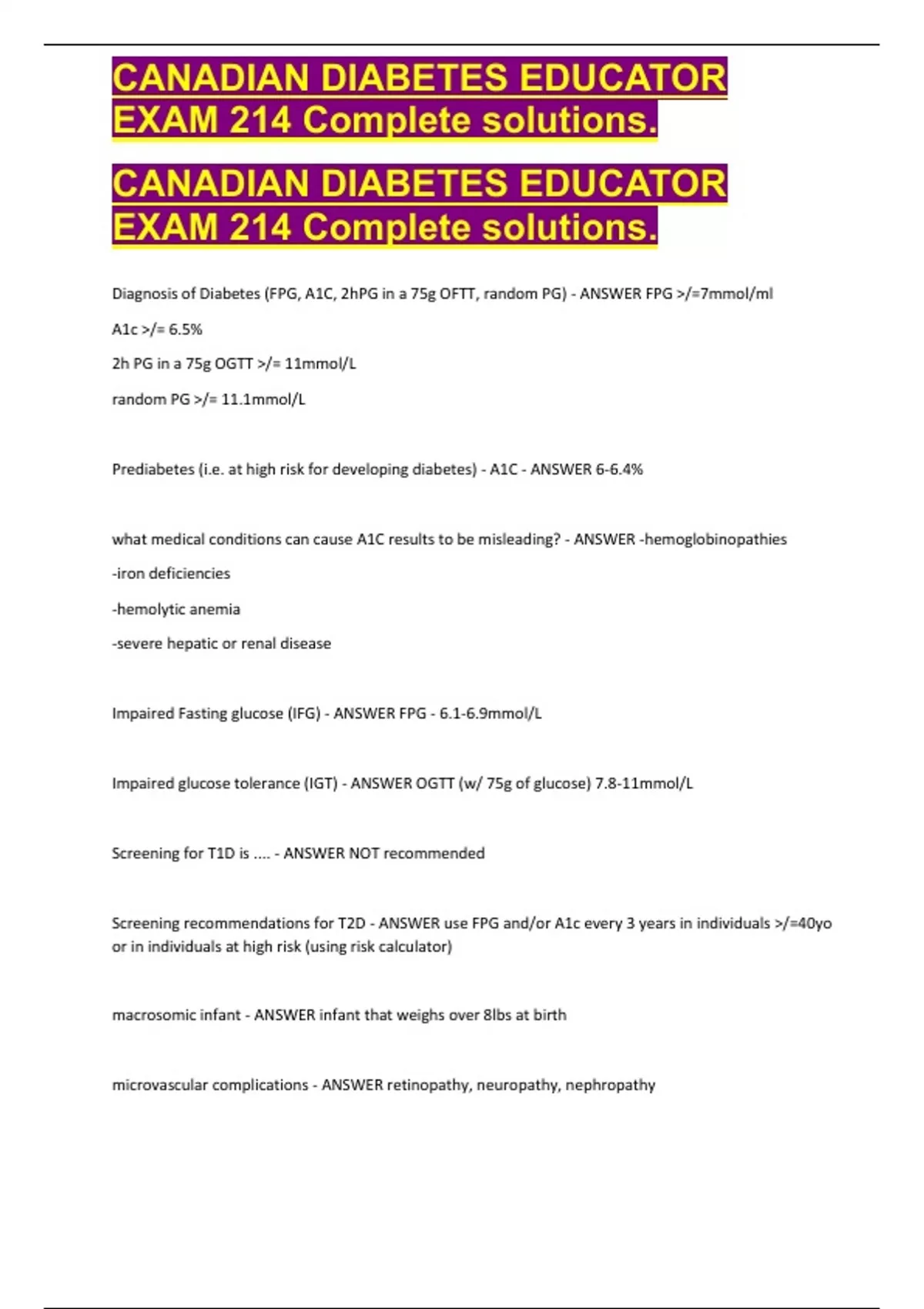 Diagnosis of Diabetes (FPG, A1C, 2hPG in a 75g OFTT, random PG) - ANSWER FPG >/=7mmol/ml
