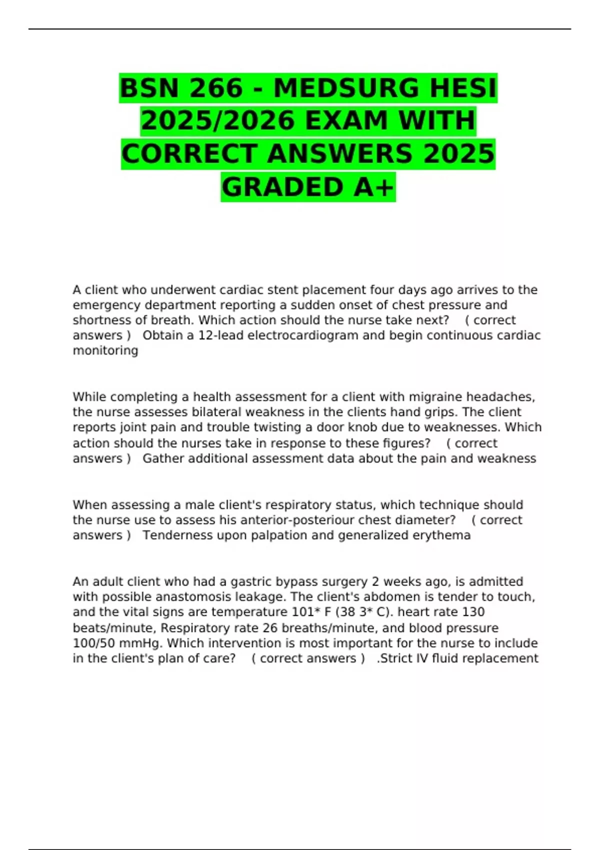 BSN 266 - MEDSURG HESI 2025/2026 EXAM WITH CORRECT ANSWERS 2025 GRADED A+