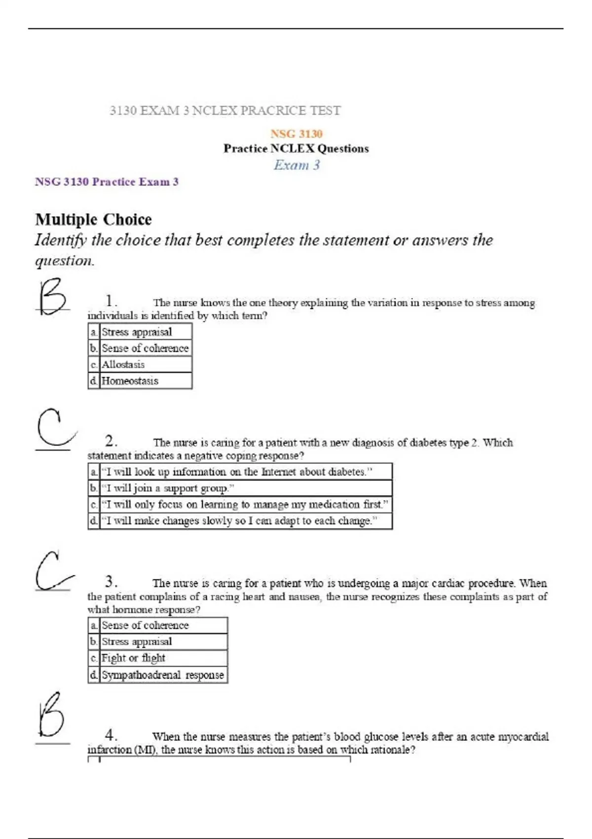 NSG 3130 Practice NCLEX Exam 3 | Questions and Answers | 2025 Update | 100% Correct.